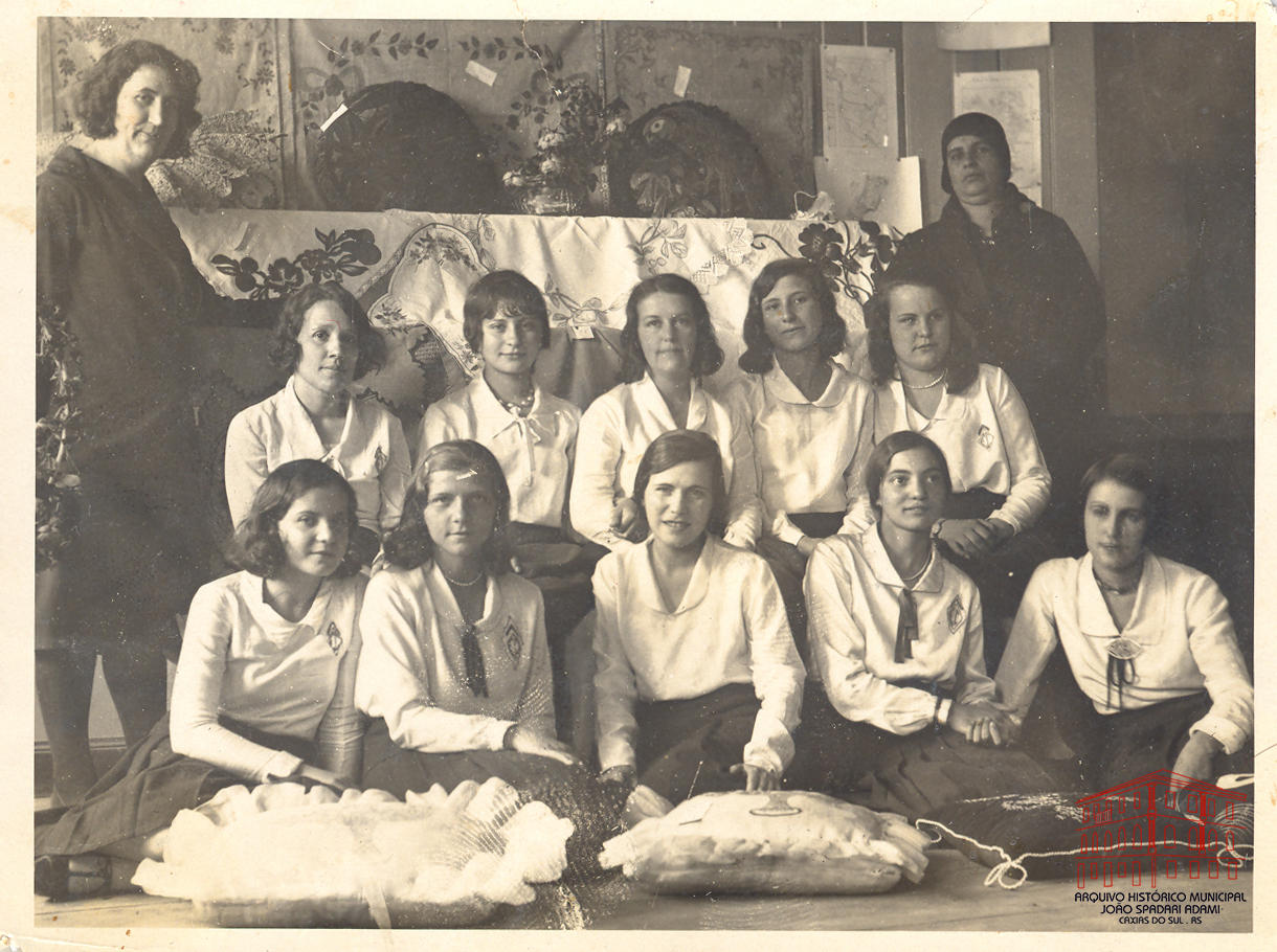 Entre as alunas, na primeira fila, ao centro, Rosalba Hipólito. Na segunda fila, da direita para a esquerda, Suely Bascu e Lourencita Chiaradia.
