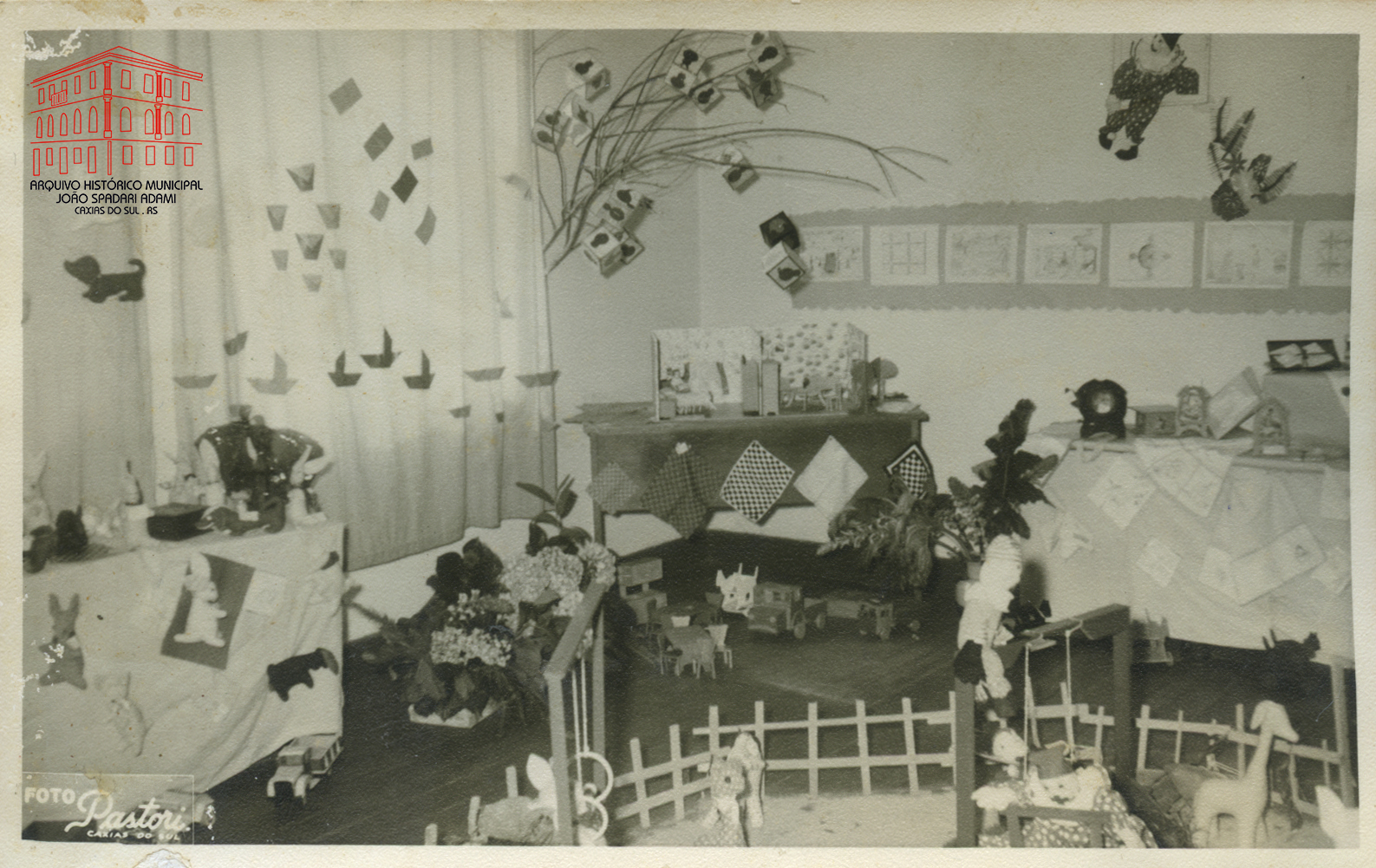 Exposição de trabalhos na Escola Normal Duque de Caxias situada na rua Visconde de Pelotas, prédio onde atualmente funciona a Escola Estadual Presidente Vargas.
