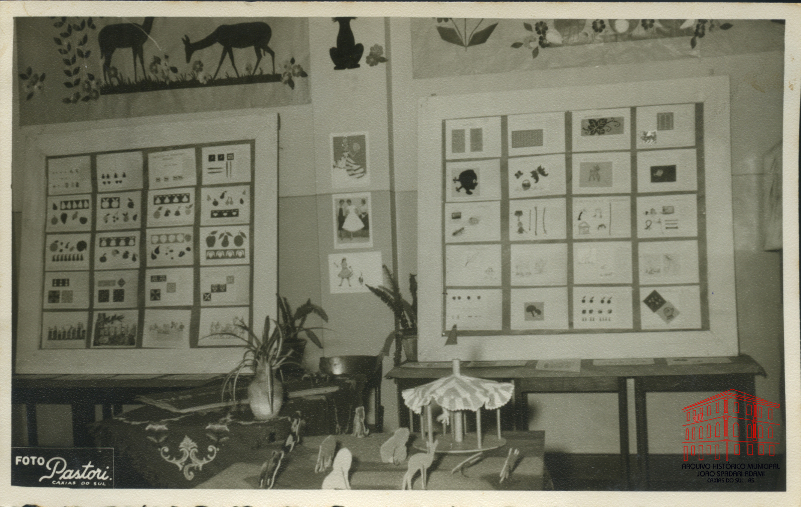 Exposição de trabalhos na Escola Normal Duque de Caxias situada na rua Visconde de Pelotas, prédio onde atualmente funciona a Escola Estadual Presidente Vargas.