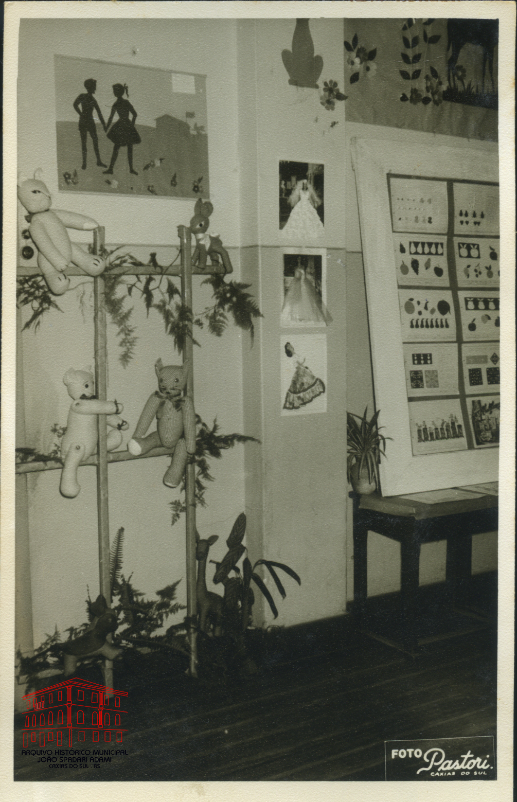 Exposição de trabalhos na Escola Normal Duque de Caxias situada na rua Visconde de Pelotas, prédio onde atualmente funciona a Escola Estadual Presidente Vargas.