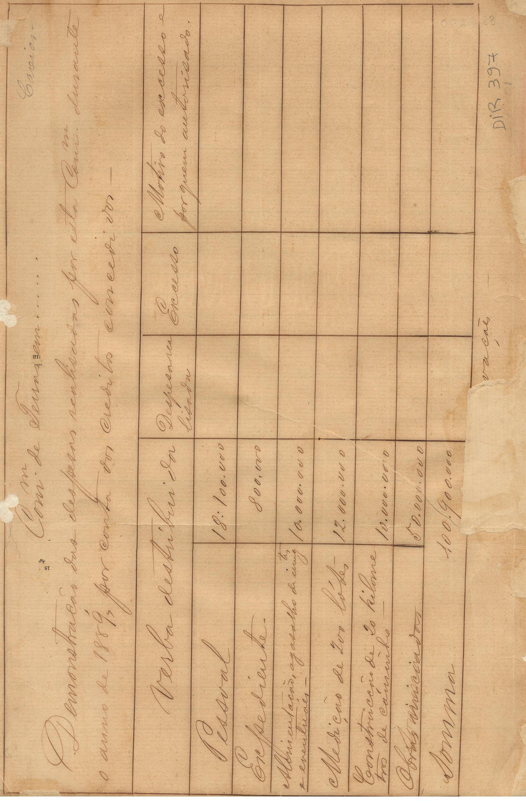 Comissão de Terras em Caxias. Assunto: demonstração das despesas realizadas pela Comissão (pessoal, expediente, alimentação e manutenção dos imigrantes, medição de lotes, construção de caminho, obras iniciadas).