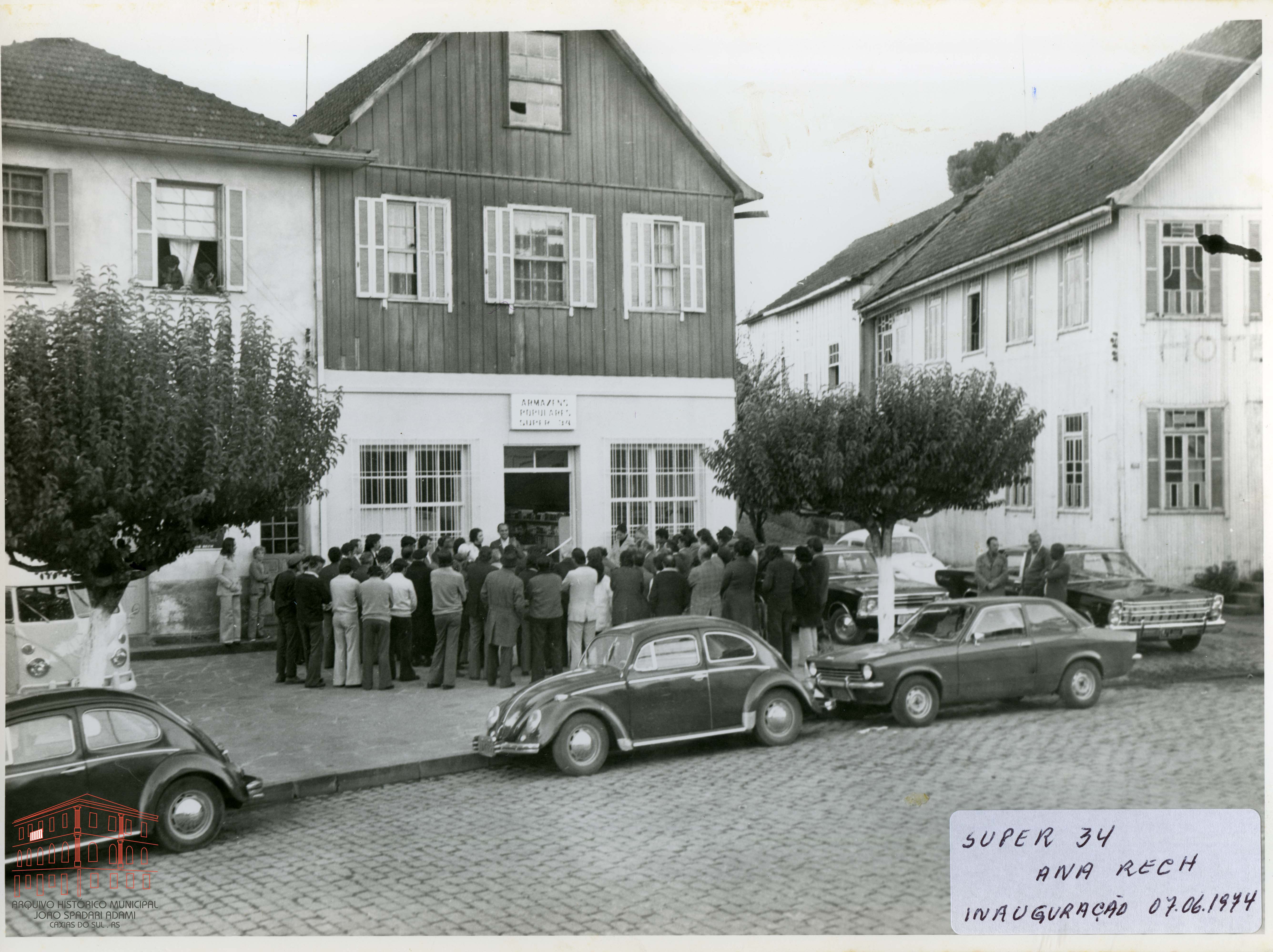 Autoridades e comunidade na inauguração do Super 34 Armazéns Populares, localizado na avenida Rio Branco nº 1672, em Ana Rech - Caxias do Sul