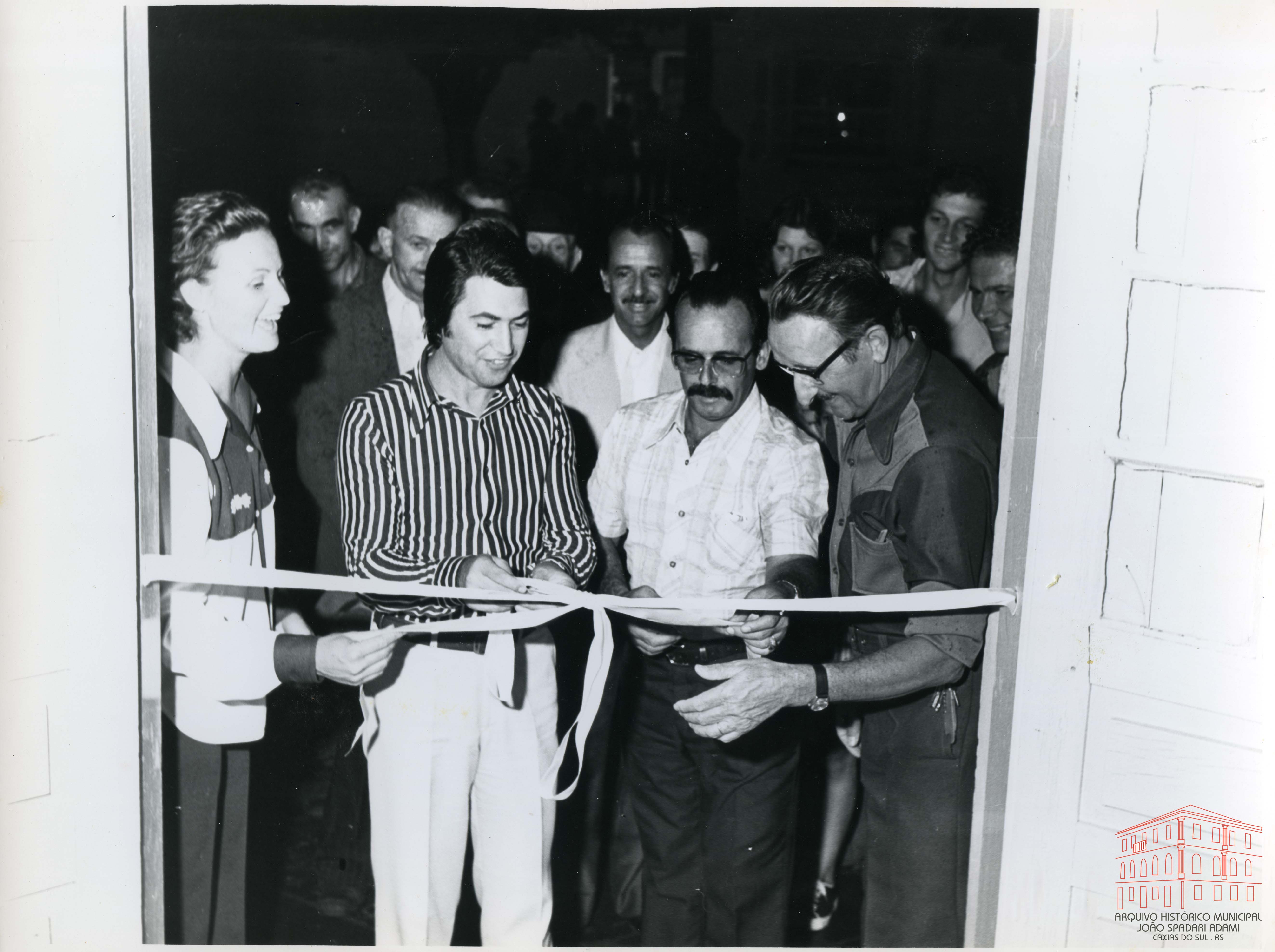 Laís Moretto Kuser, Diretora do DMAP e Prefeito Mário David Vanin, de camisa listrada, na inauguração do Armazém Popular Nº 35, localizado em Fazenda Souza - Caxias do Sul