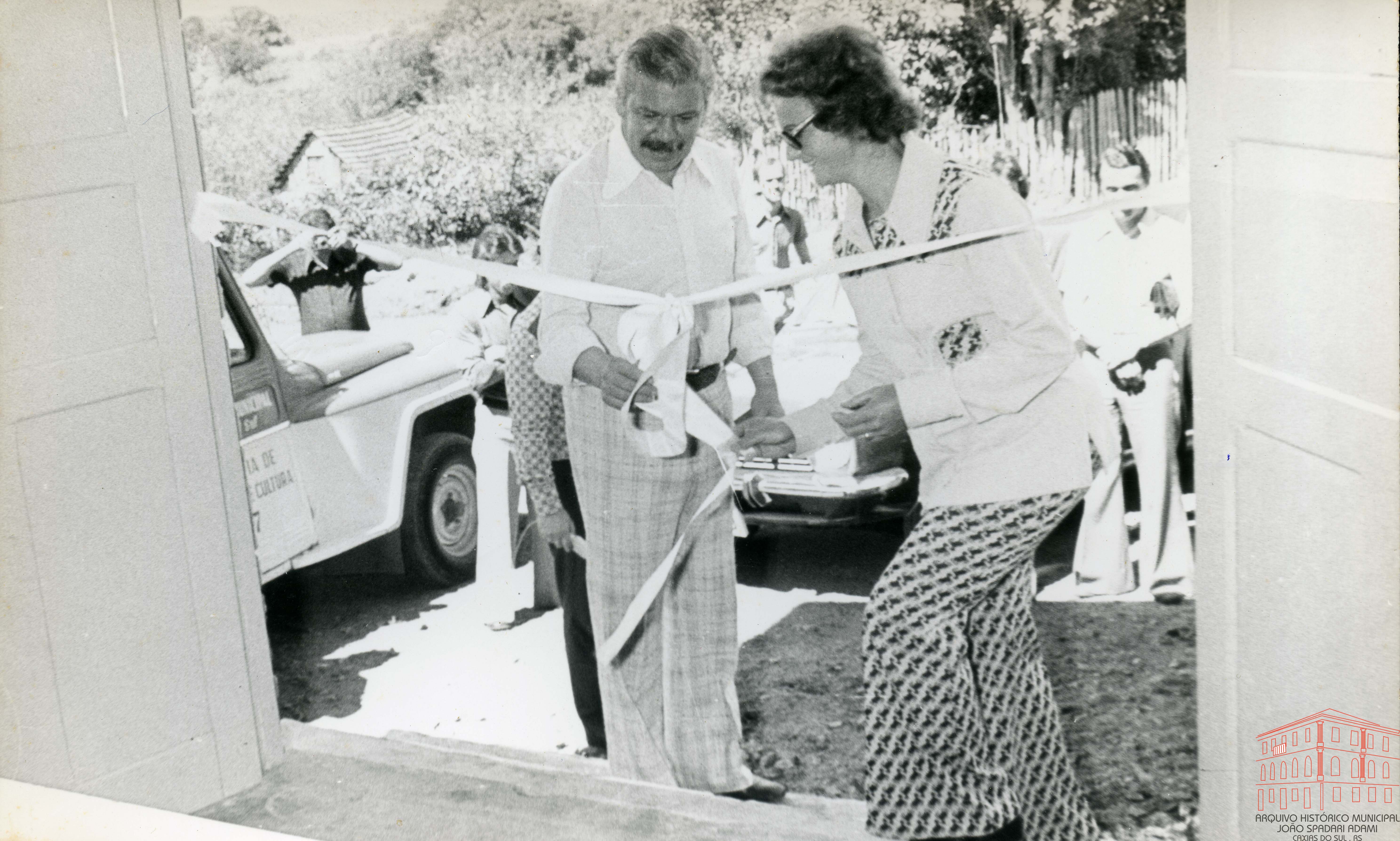 Prefeito Mário Bernardino Ramos e Diretora do DMAP Laís Moretto Kuser na inauguração do Armazém Popular Nº 40, localizado em Vila Seca - Caxias do Sul