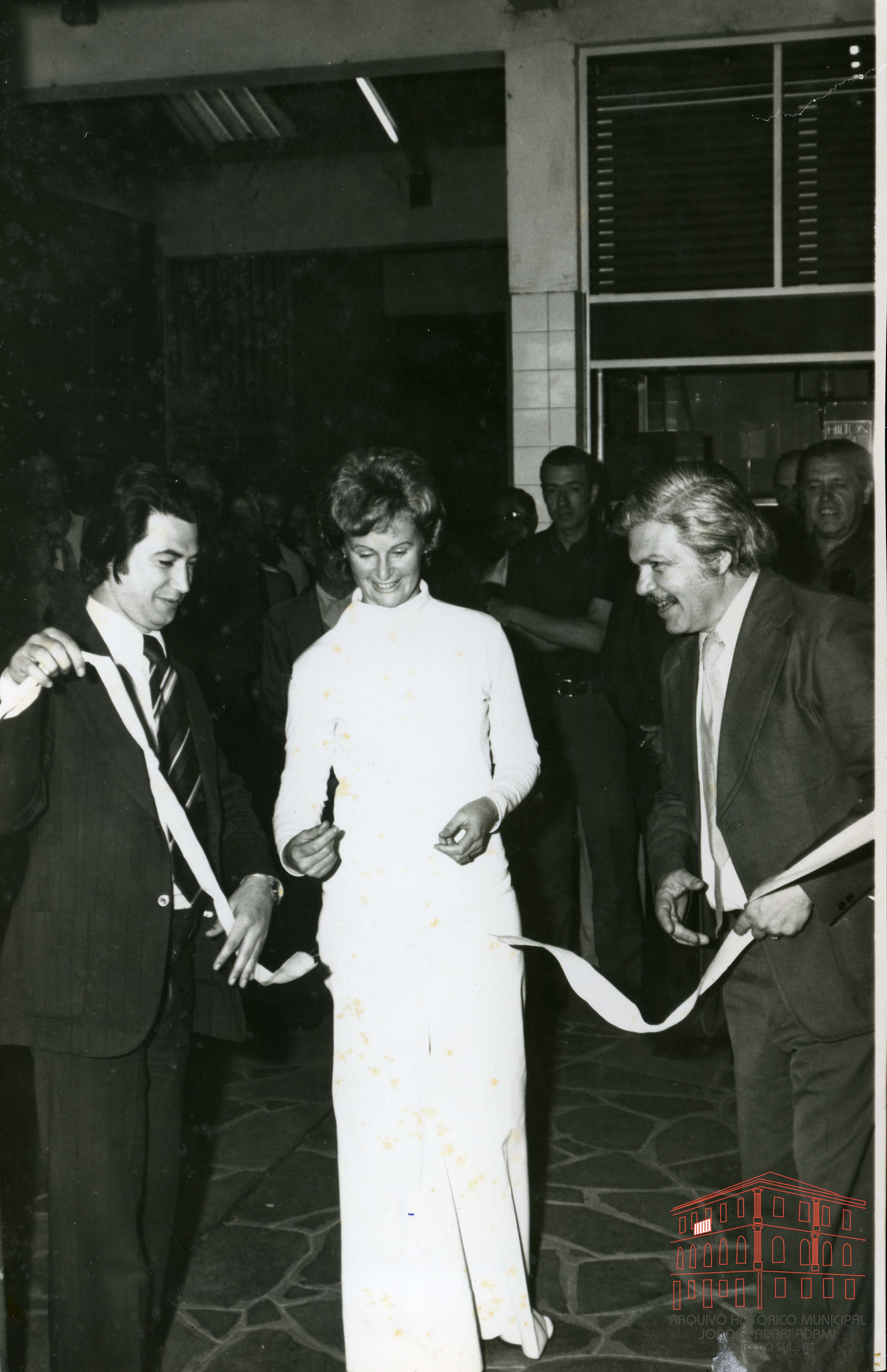 Vice-Prefeito Mário David Vanin, Diretora do DMAP Laís Moretto Kuser e Prefeito Mário Bernardino Ramos na inauguração do Super 42 Armazéns Populares, localizado na rua Vinte de Setembro - Caxias do Sul, junto ao Mercado Público Municipal