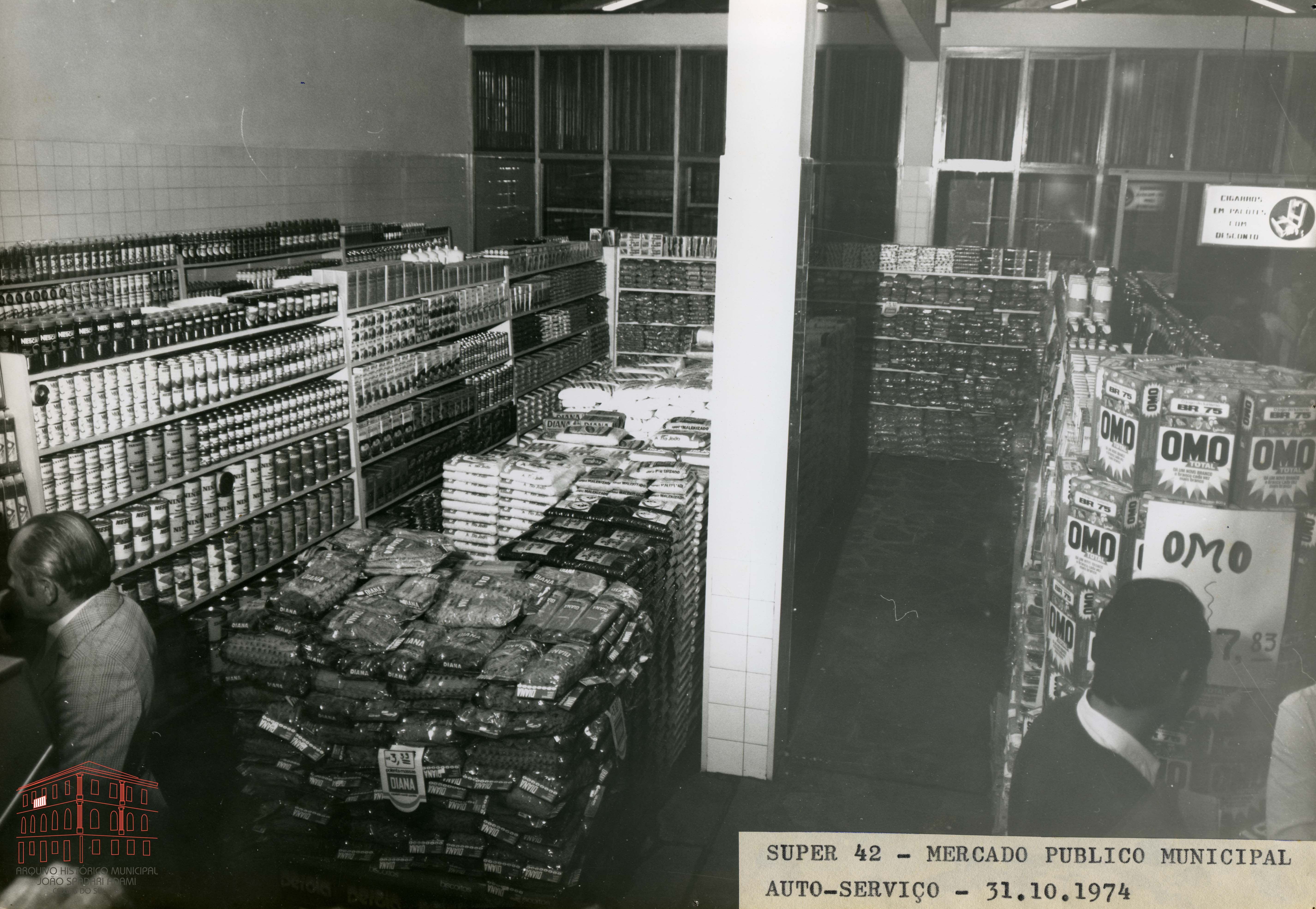 Vista parcial interna do Super 42 Armazéns Populares na inauguração, localizado na rua Vinte de Setembro - Caxias do Sul, junto ao Mercado Público Municipal