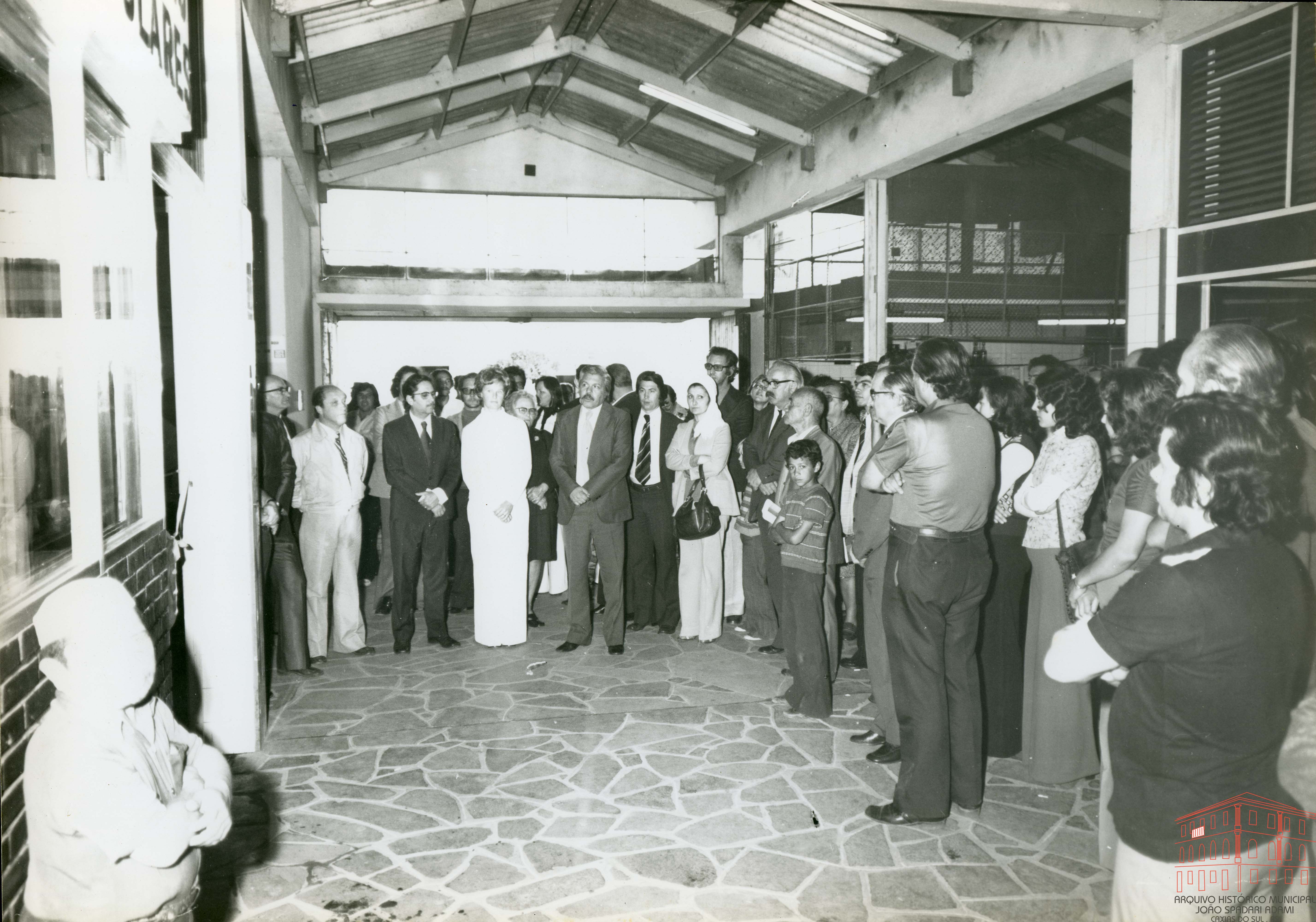 Da esquerda para direita, 3º Oscar Ávila da Silva, 4º Diretora do DMAP Laís Moretto Kuser,5º Prefeito Mário Bernardino Ramos, 6º Vice-Prefeito Mário David Vanin e 7º Secretária de Habitação e Ação Social, Lourdes Stringhini, na inauguração do Super 42 Armazéns Populares, localizado na rua Vinte de Setembro - Caxias do Sul, junto ao Mercado Público Municipal