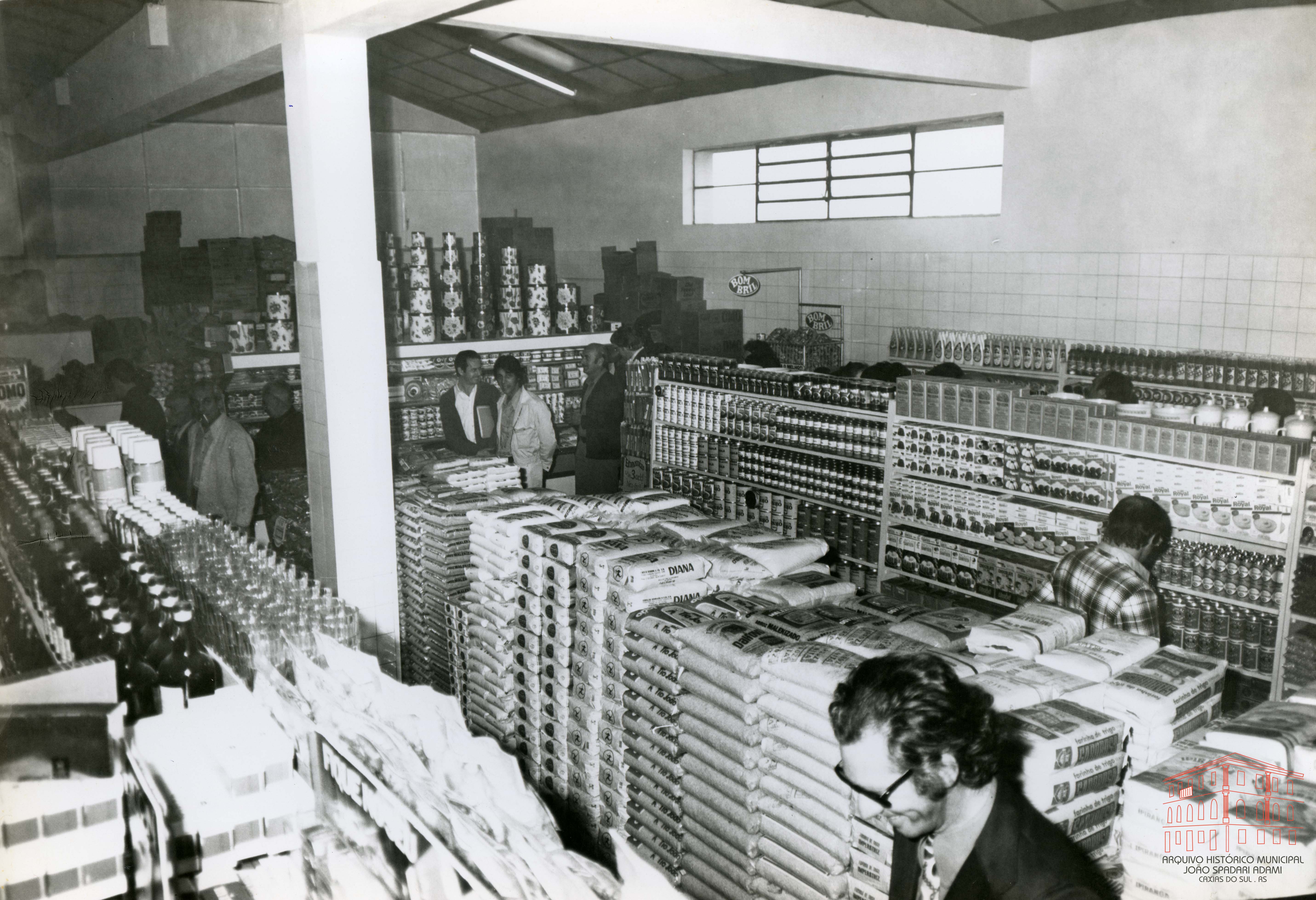 Autoridades e comunidade no interior do Super 42 Armazéns Populares durante a inauguração, localizado na rua Vinte de Setembro - Caxias do Sul, junto ao Mercado Público Municipal
