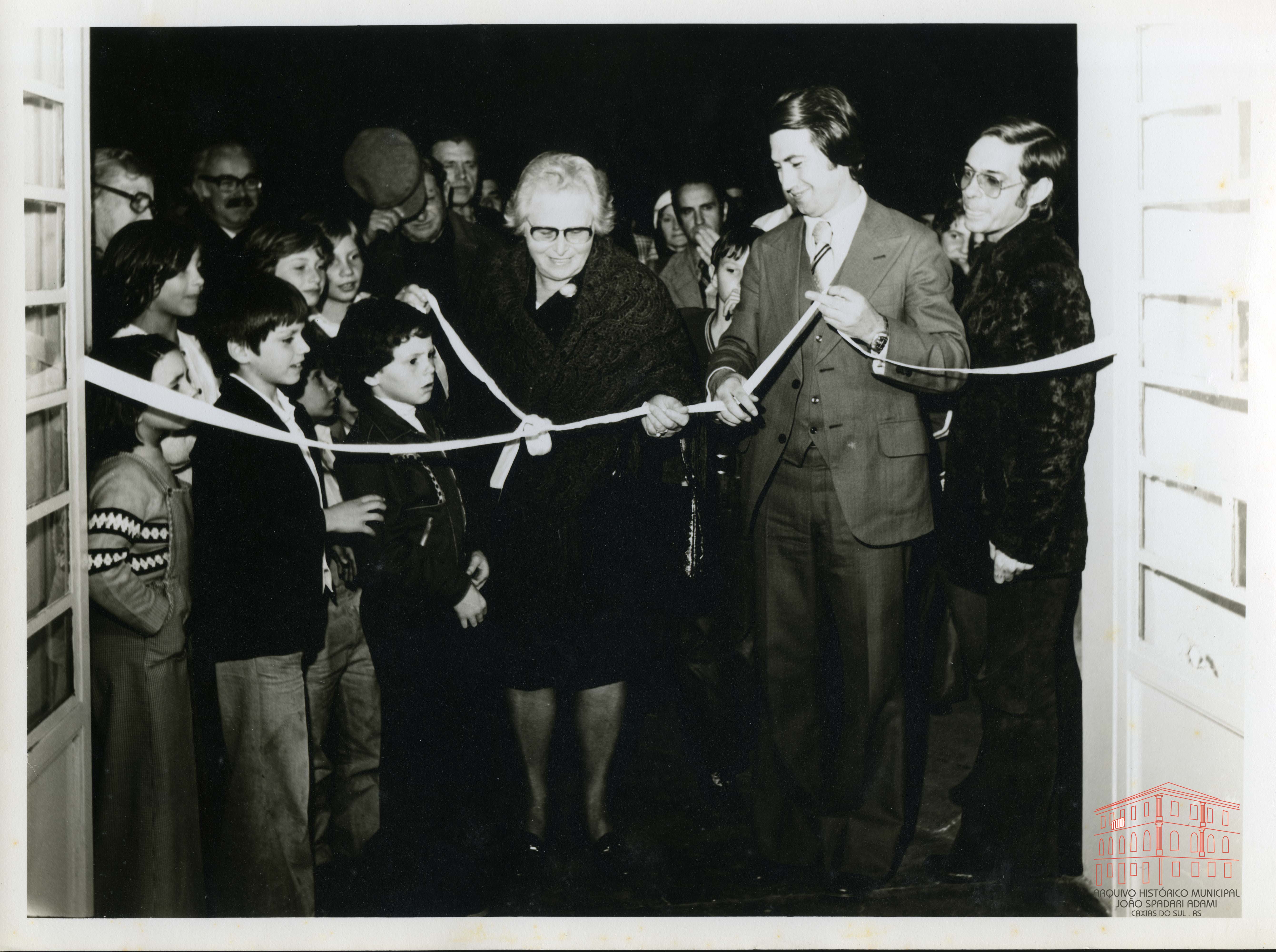 Paulina Soldatelli Moretto e Prefeito Mário David Vanin na inauguração do novo prédio do Armazém Popular Nº 47, localizado na rua Uruguai nº 301, bairro Jardim América - Caxias do Sul