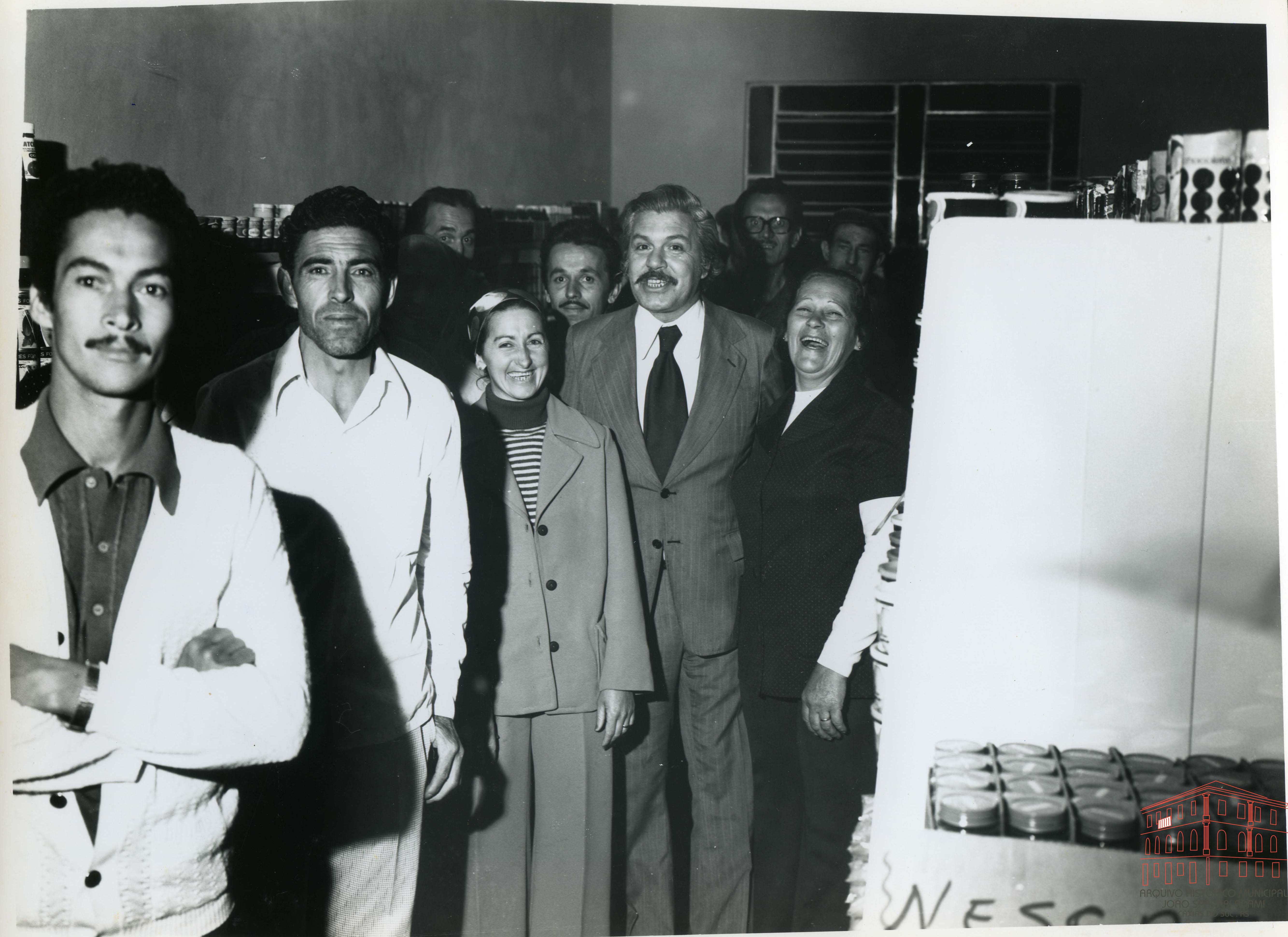 Ao centro, Prefeito Mário Bernardino Ramos e comunidade no interior do Super 18 Armazéns Populares, localizado na rua Silveira Martins nº 993, bairro Boa Vista - Caxias do Sul