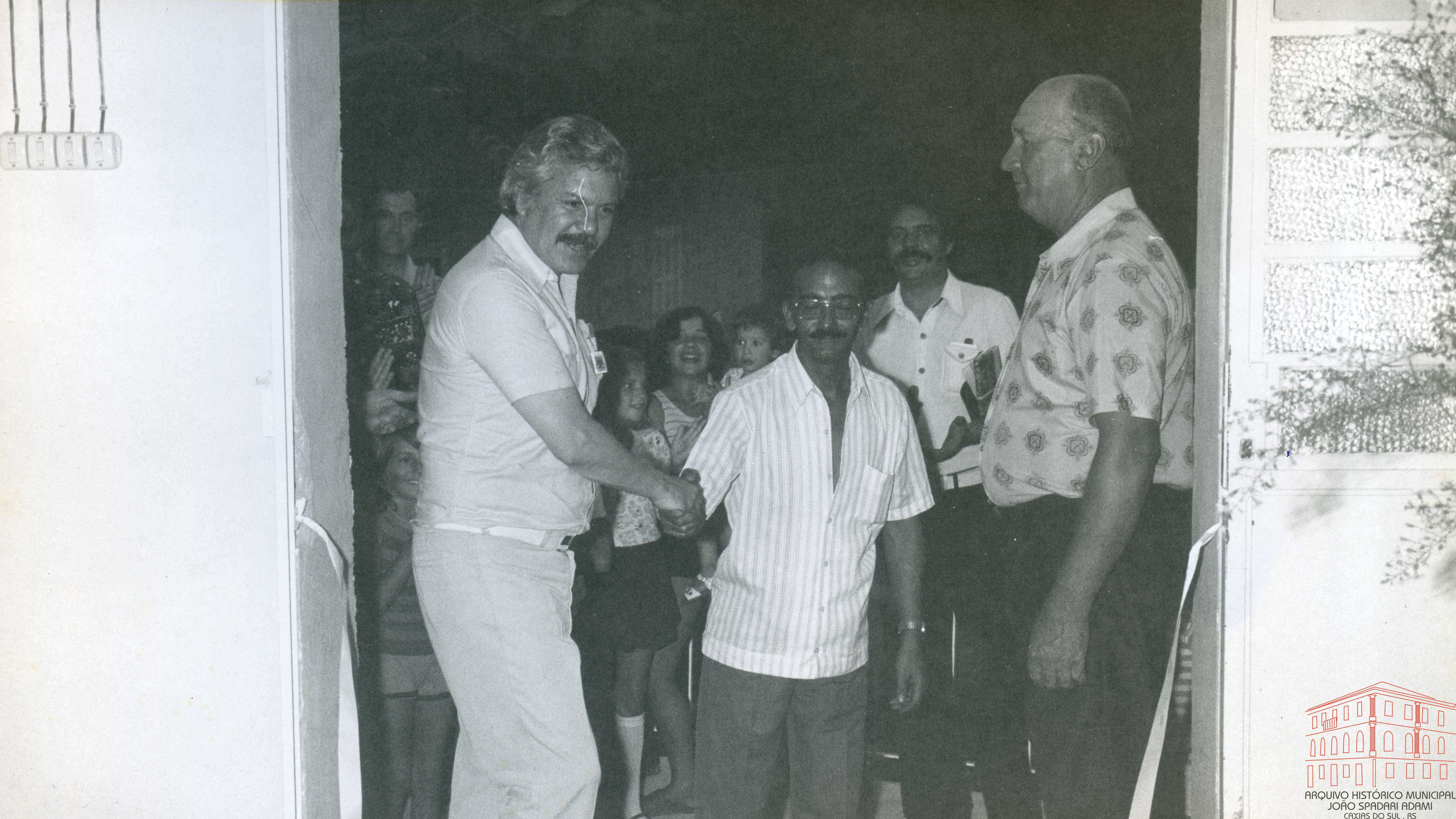 Prefeito Mário Bernardino Ramos e, à direita, Vereador Otto Scheifler na inauguração do Super 19 Armazéns Populares, localizado na rua André Viero nº 11, bairro Marechal Floriano - Caxias do Sul