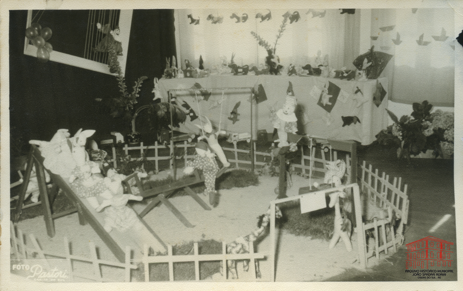 Exposição de trabalhos na Escola Normal Duque de Caxias situada na rua Visconde de Pelotas, prédio onde atualmente funciona a Escola Estadual Presidente Vargas.