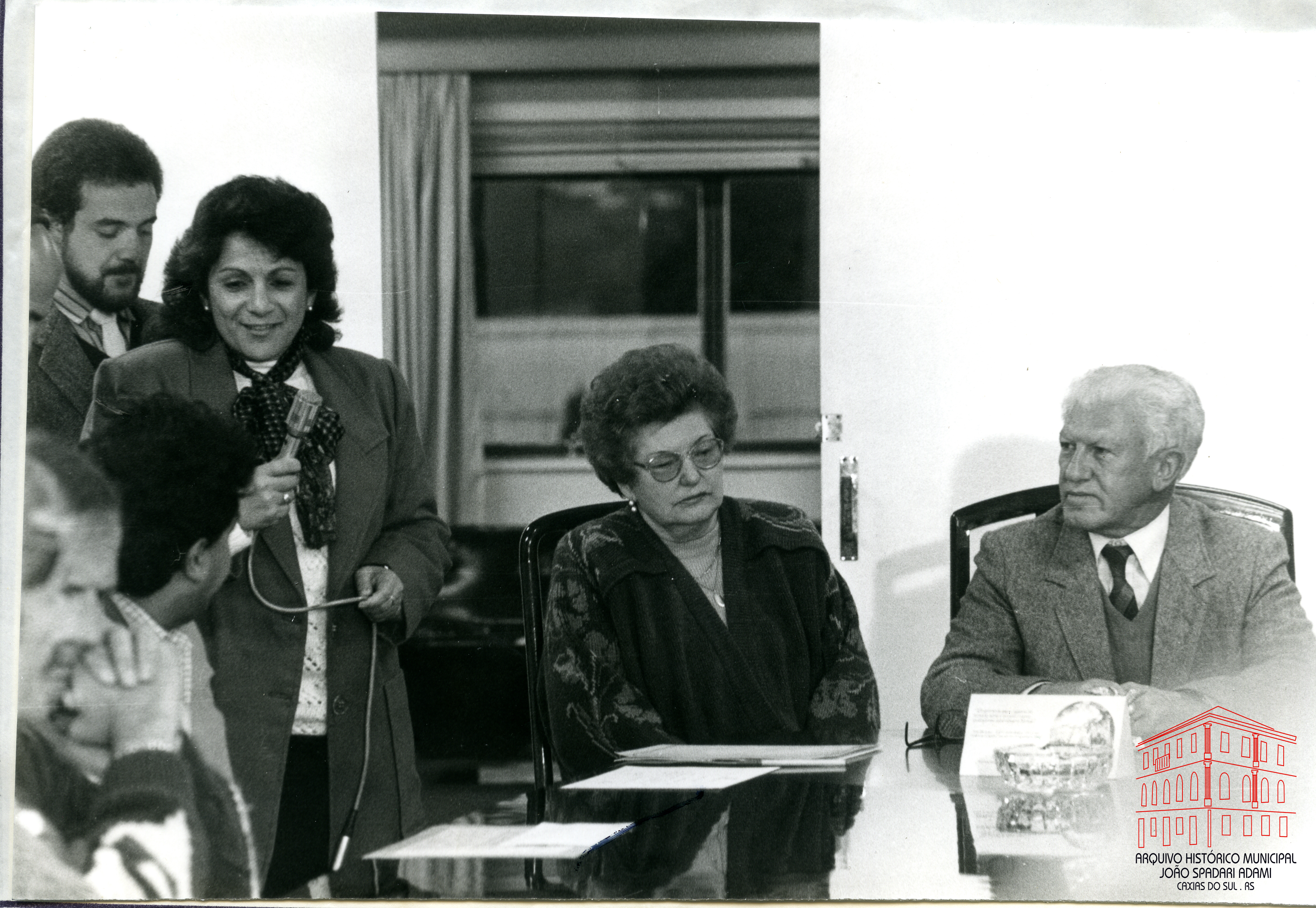 Sentados, Arilde Trez, esposa do Prefeito e Prefeito Victorio Trez na entrega da premiação do Concurso Anual Literário, em 07 de junho de 1988.
