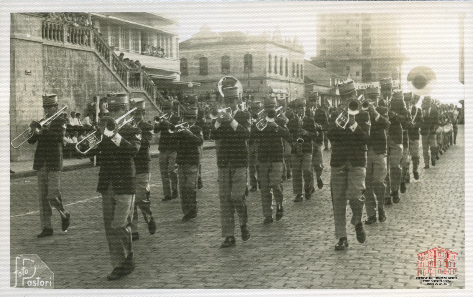 Banda no desfile da Semana da Pátria de 1962 na rua Sinimbu, em frente a Catedral Diocesana.