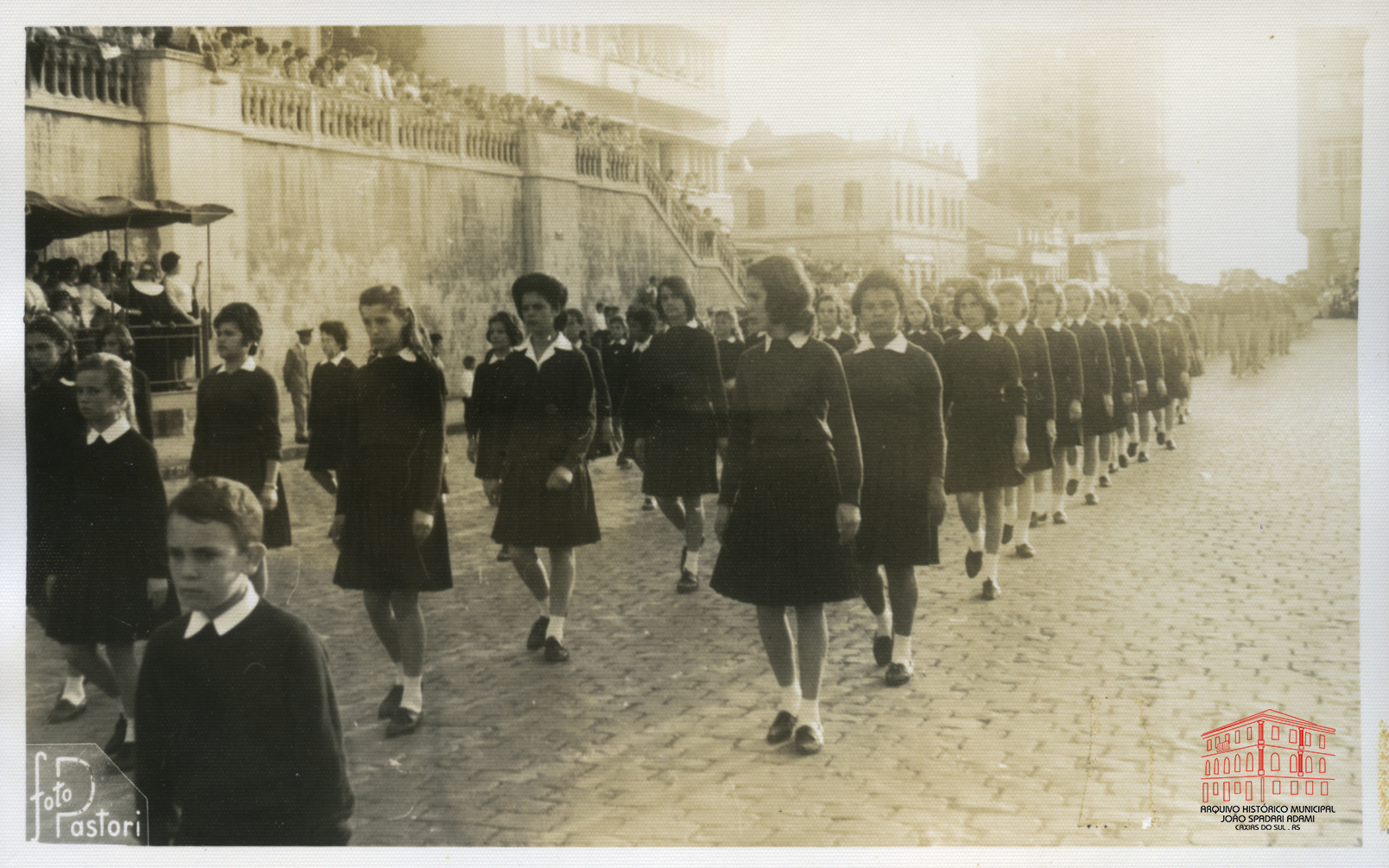 Alunas no desfile da Semana da Pátria de 1962 na rua Sinimbu, em frente a Catedral Diocesana.