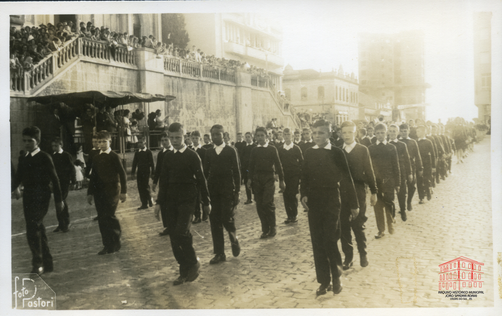 Alunos no desfile da Semana da Pátria de 1962 na rua Sinimbu, em frente a Catedral Diocesana.