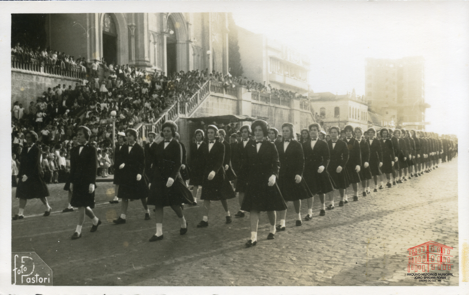 Alunas da Escola Normal Duque de Caxias no desfile da Semana da Pátria na rua Sinimbu, em frente à Catedral Diocesana.
