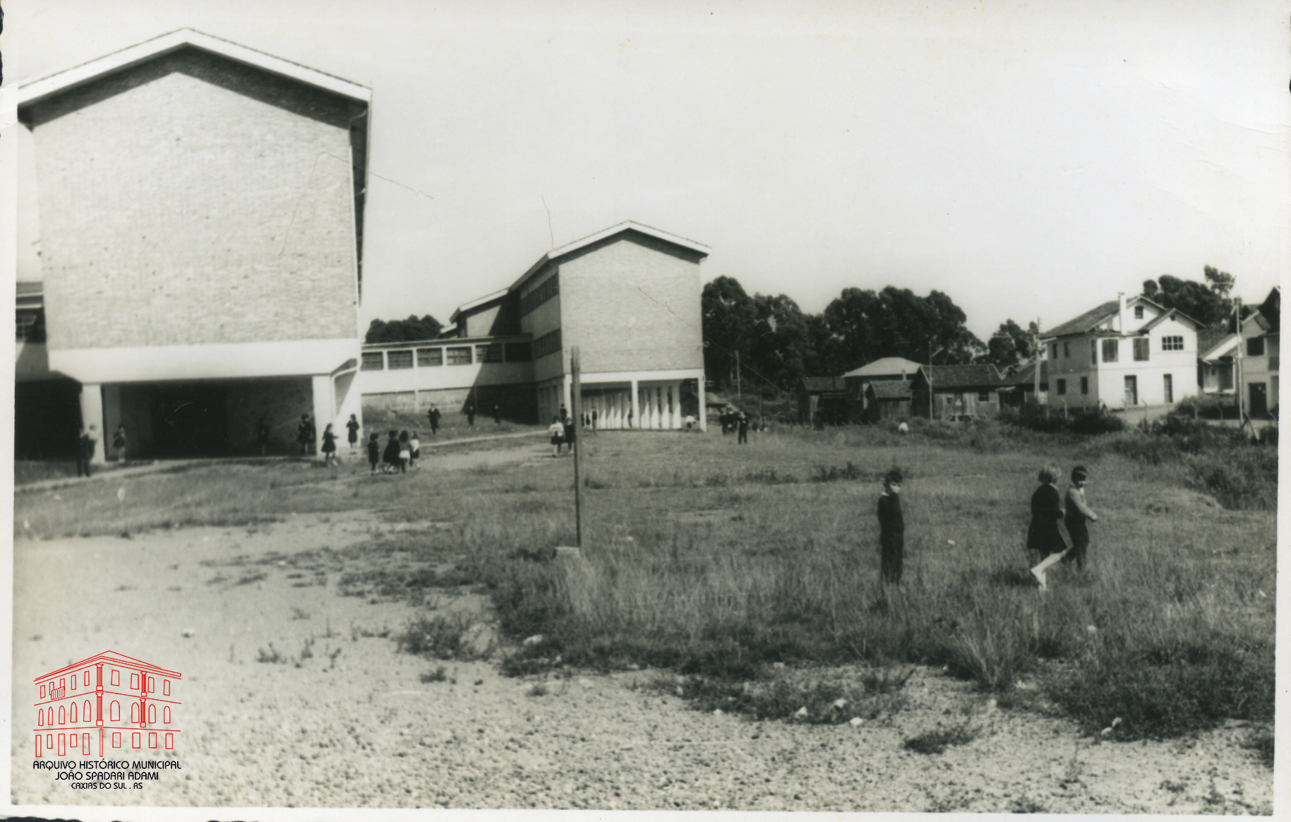 Vista lateral dos prédios do Colégio Estadual Cristóvão de Mendoza, situado na Avenida Júlio de Castilhos, onde atualmente funciona o Instituto Estadual de Educação Cristóvão de Mendoza