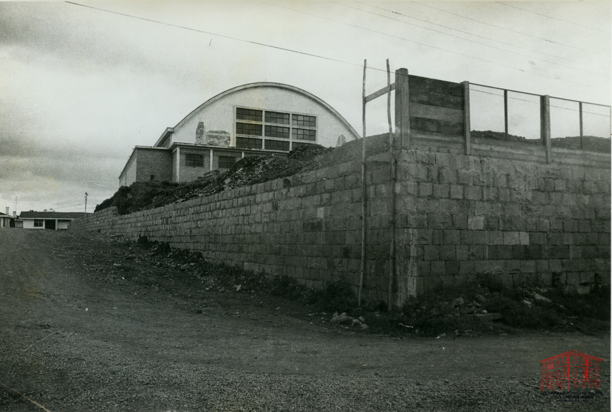 Vista do ginásio da Escola Normal Duque de Caxias e Colégio Estadual Cristóvão de Mendoza, situado na Avenida Júlio de Castilhos, onde atualmente funciona o Instituto Estadual de Educação Cristóvão de Mendoza.
