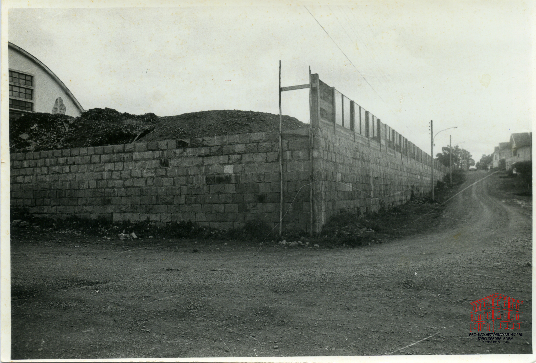 Vista parcial do ginásio e muros da Escola Normal Duque de Caxias e Colégio Estadual Cristóvão de Mendoza, situado na Avenida Júlio de Castilhos, onde atualmente funciona o Instituto Estadual de Educação Cristóvão de Mendoza.