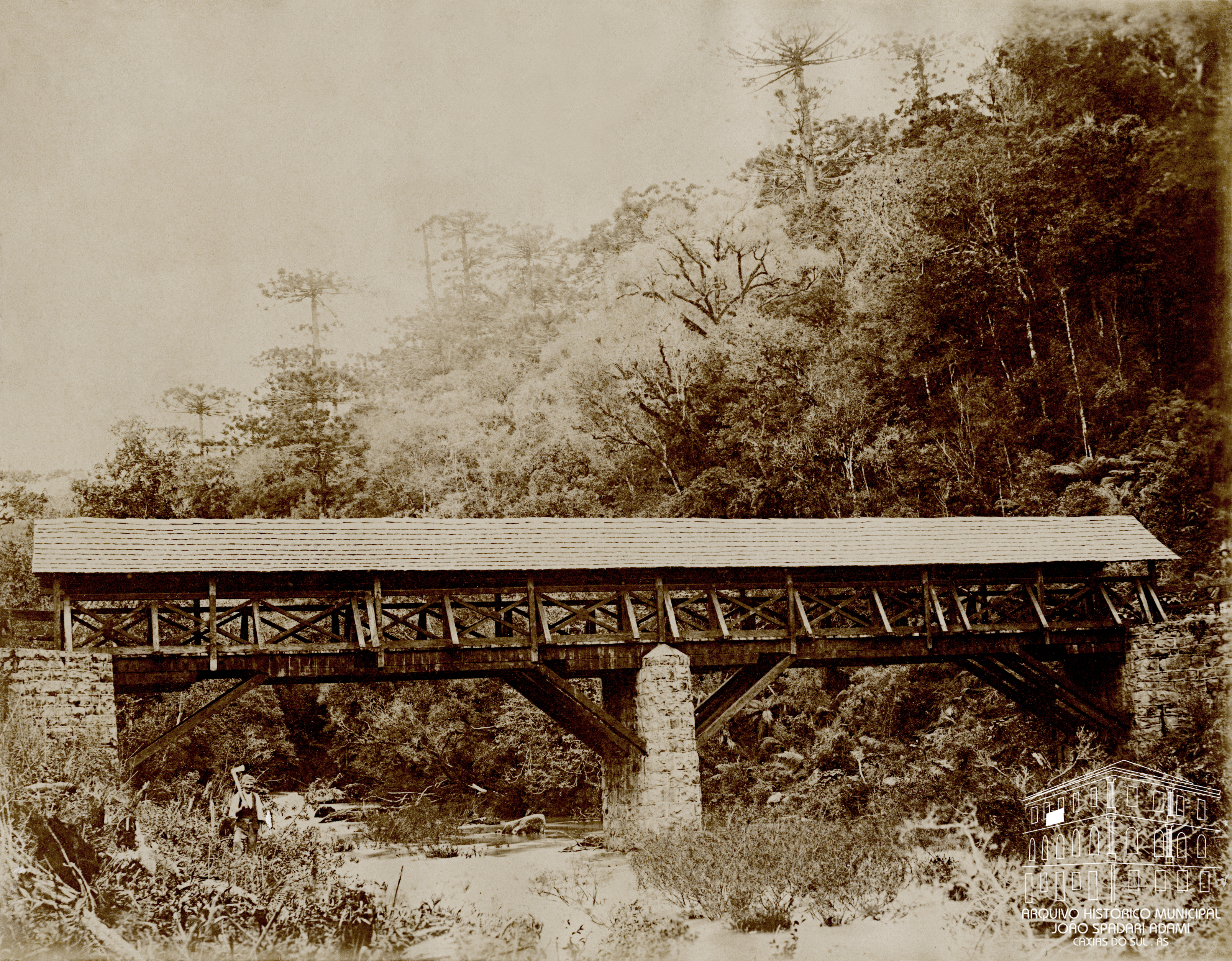 Ponte sobre o rio Retiro, entre as colônias Alfredo Chaves, atual município de Veranópolis, e Monte Veneto, atual município de Cotiporã.