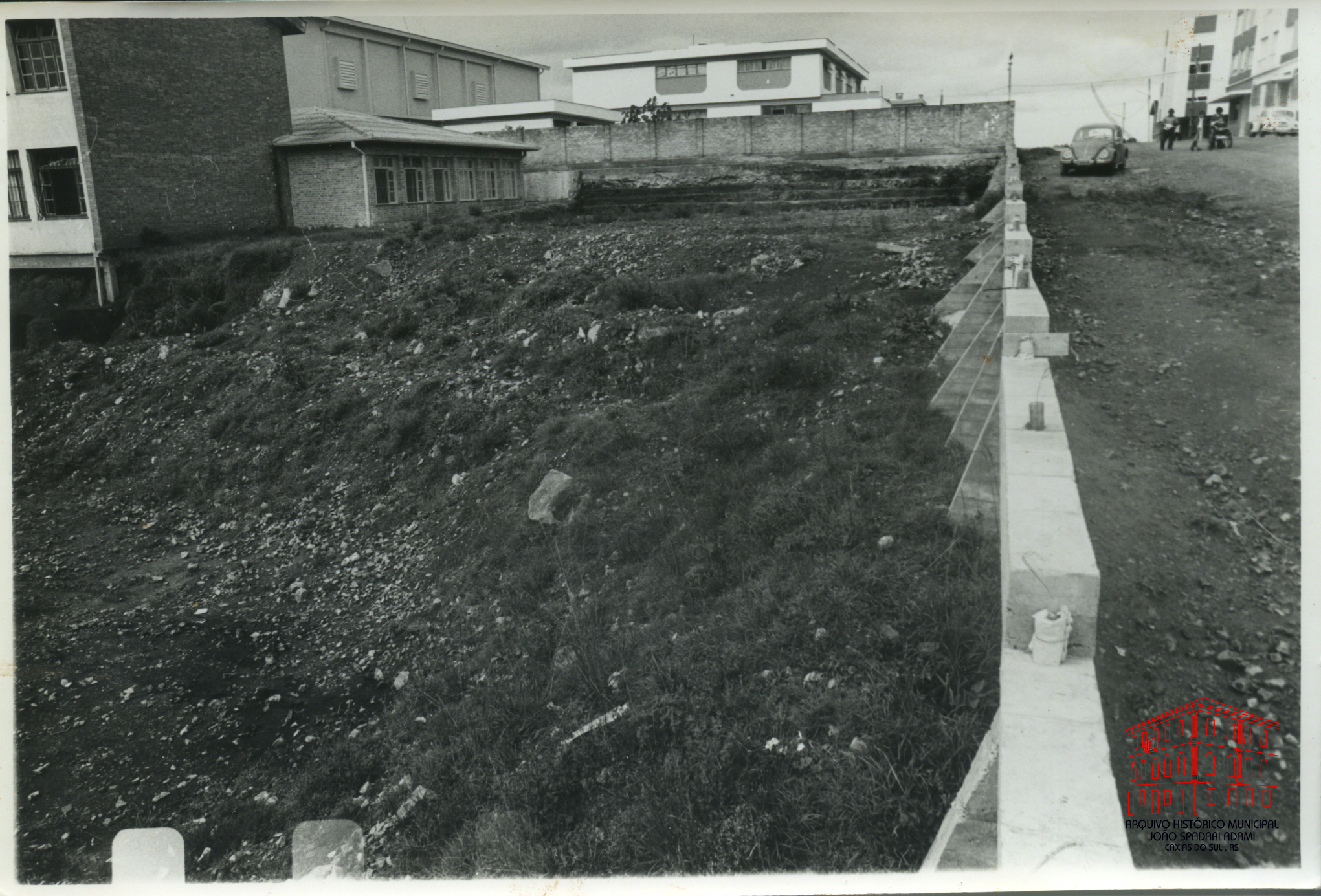 Vista dos fundos e do muro lateral da Escola Normal Duque de Caxias e Colégio Estadual Cristóvão de Mendoza, situado na Avenida Júlio de Castilhos, onde atualmente funciona o Instituto Estadual de Educação Cristóvão de Mendoza.