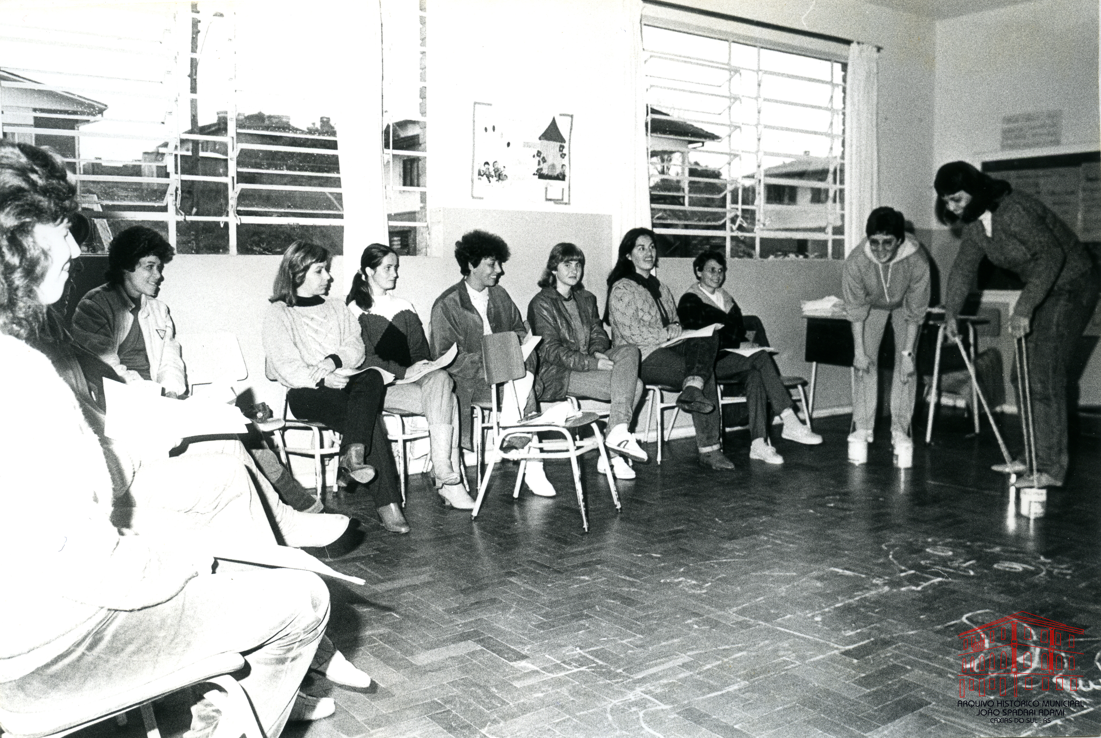 Encontro de professores de 1ª série sobre as áreas de Educação Física e Educação Artística, ocorrido na Escola Municipal Prefeito Luciano Corsetti, no período de 04 a 06 de agosto de 1986.