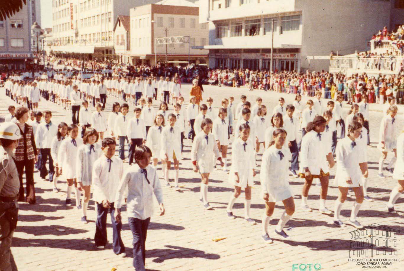 Desfile dos alunos dos Grupos Escolares Municipais no dia 7 de Setembro de 1973.