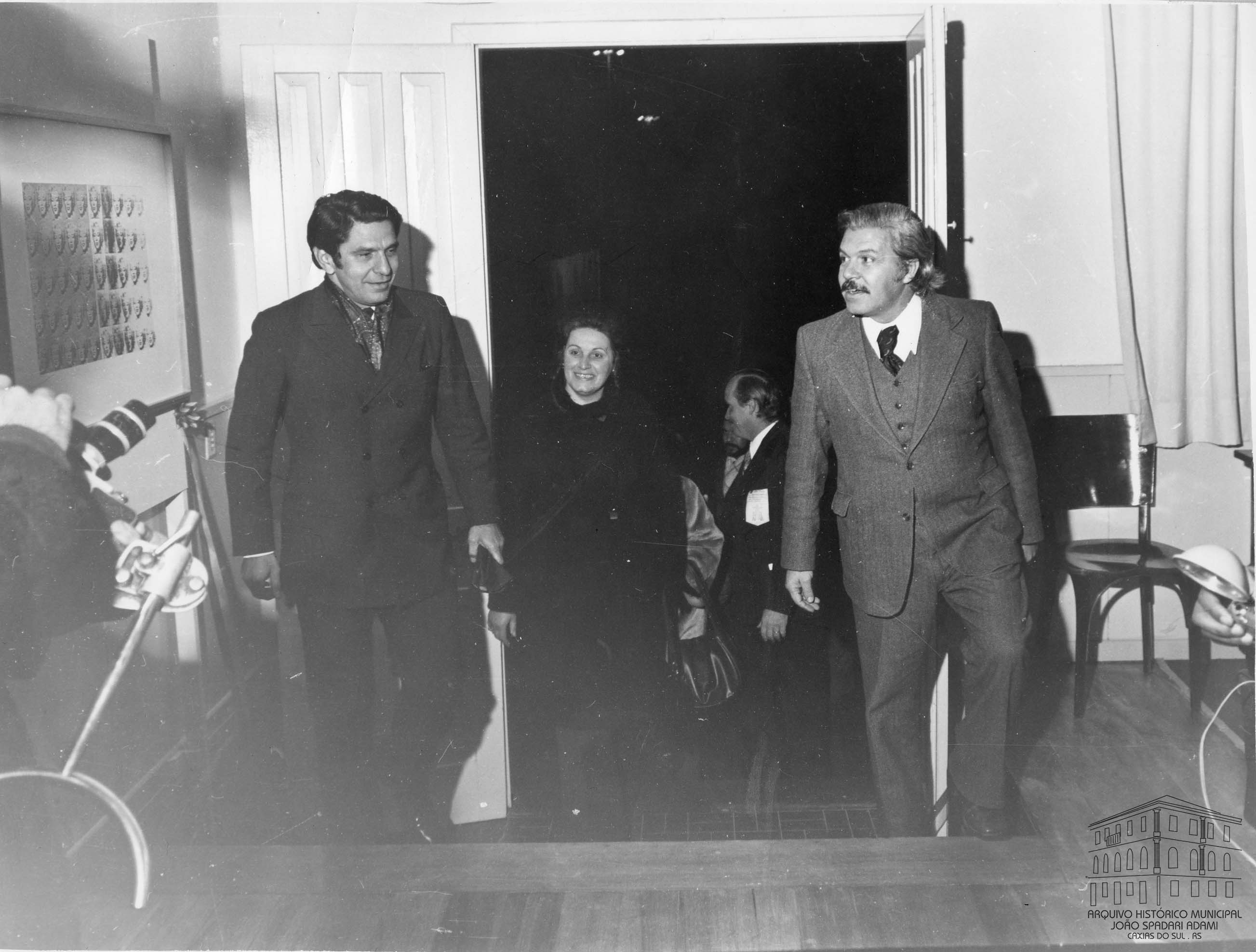 Solenidade de abertura da 1ª Exposição do Museu de Arte Didacta. À direita, Prefeito Mário Bernardino Ramos e, ao centro, Santina Barp Amorim, Secretária Municipal da Educação e Cultura.