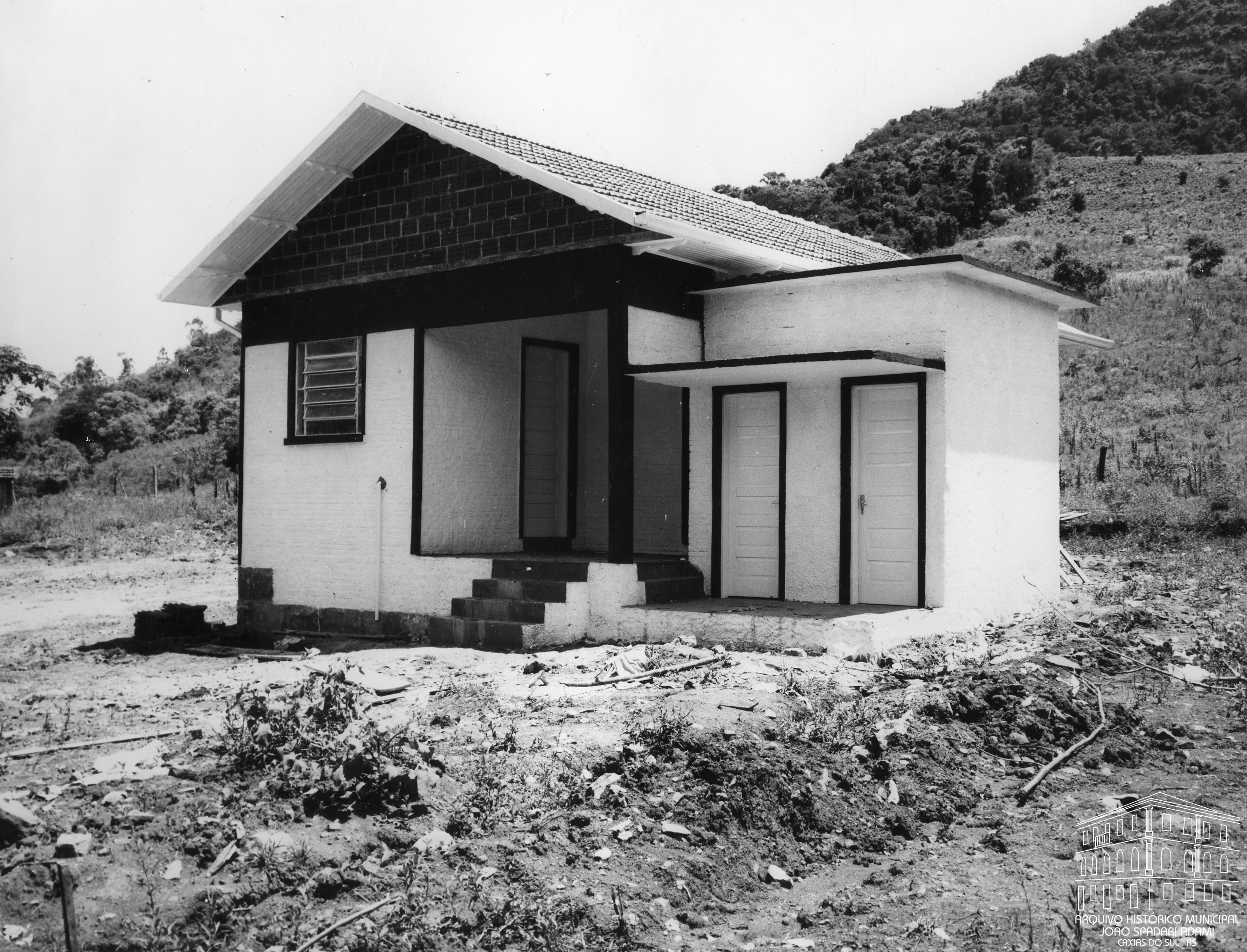 Prédio do Grupo Escolar Municipal da Zona Rotta, em Nova Palmira, Distrito de Galópolis. Posteriormente denominada Escola Municipal Assis Brasil. Atualmente localizada no Distrito de Vila Cristina, criado em 1992.