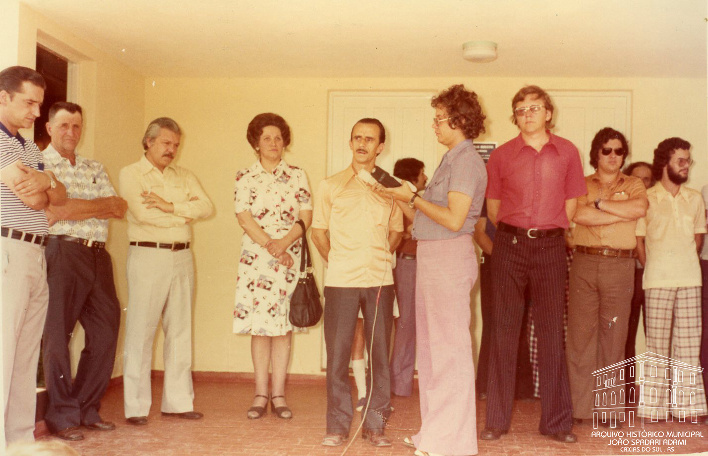 Inauguração do Grupo Escolar Felipe Camarão, localizado no Travessão Tirolez, Galópolis, em dezembro de 1974. Da esquerda para direita, 3º Prefeito Mário Bernardino Ramos e 4ª Santina Barp Amorim, Secretária Municipal da Educação e Cultura.