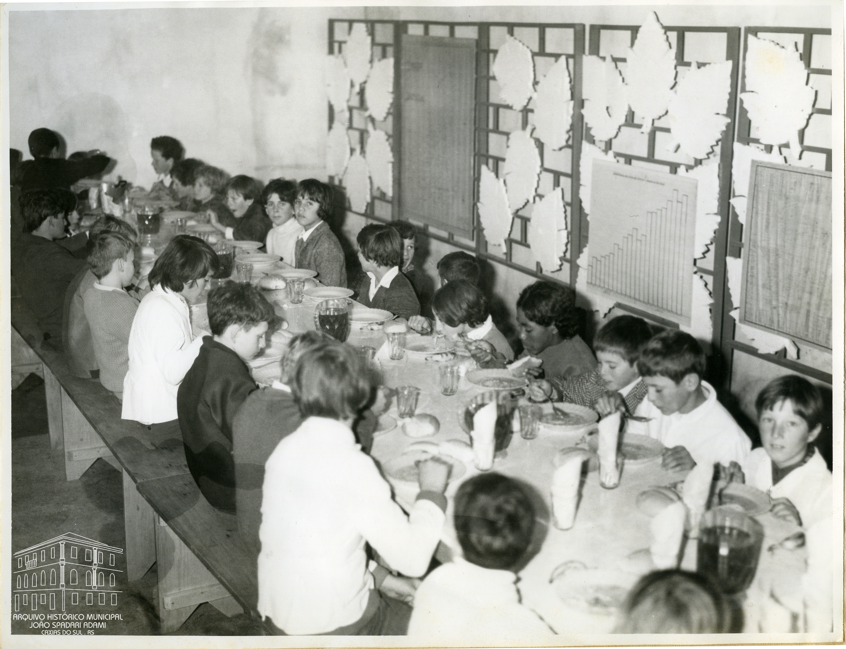 Alunos das escolas municipais do interior no almoço oferecido pelo DMAP (Departamento Municipal de Abastecimento Público) durante as comemorações da Semana de Caxias 1975.