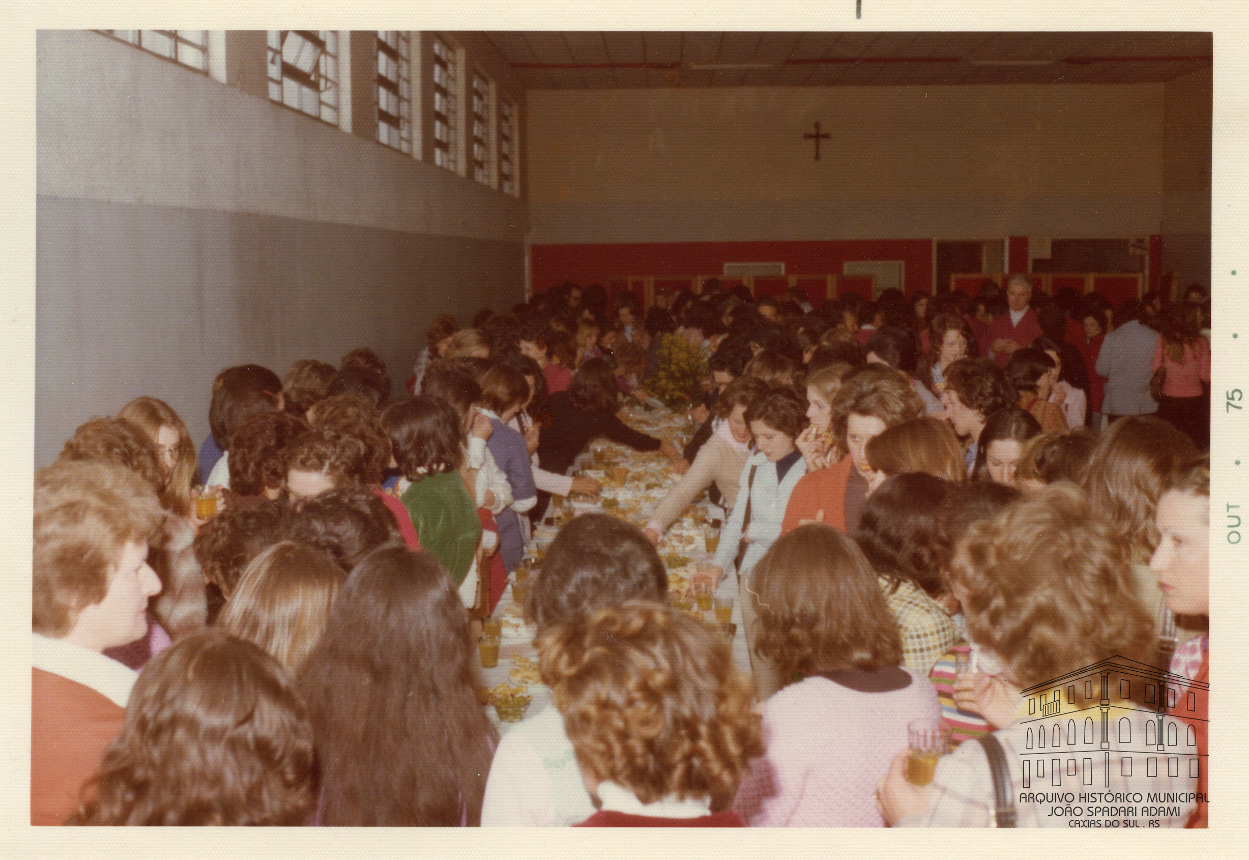 Professores no Salão Paroquial Nossa Senhora de Lourdes na comemoração ao Dia do Professor, em 15 de outubro de 1975.