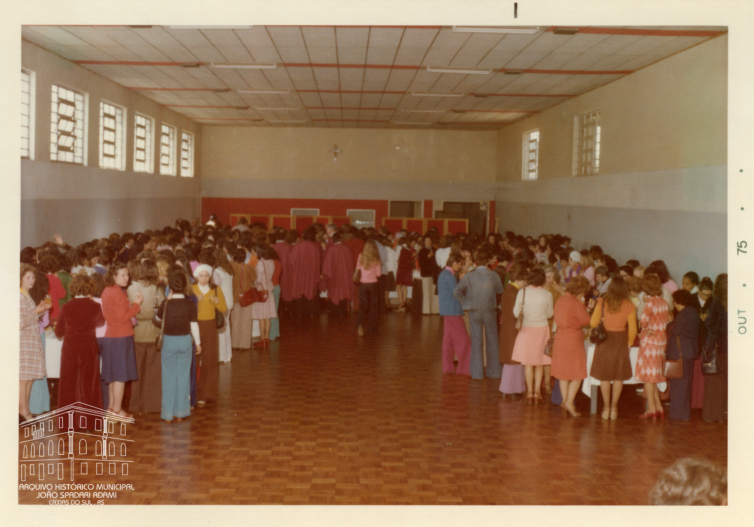 Professores no Salão Paroquial Nossa Senhora de Lourdes na comemoração ao Dia do Professor, em 15 de outubro de 1975.