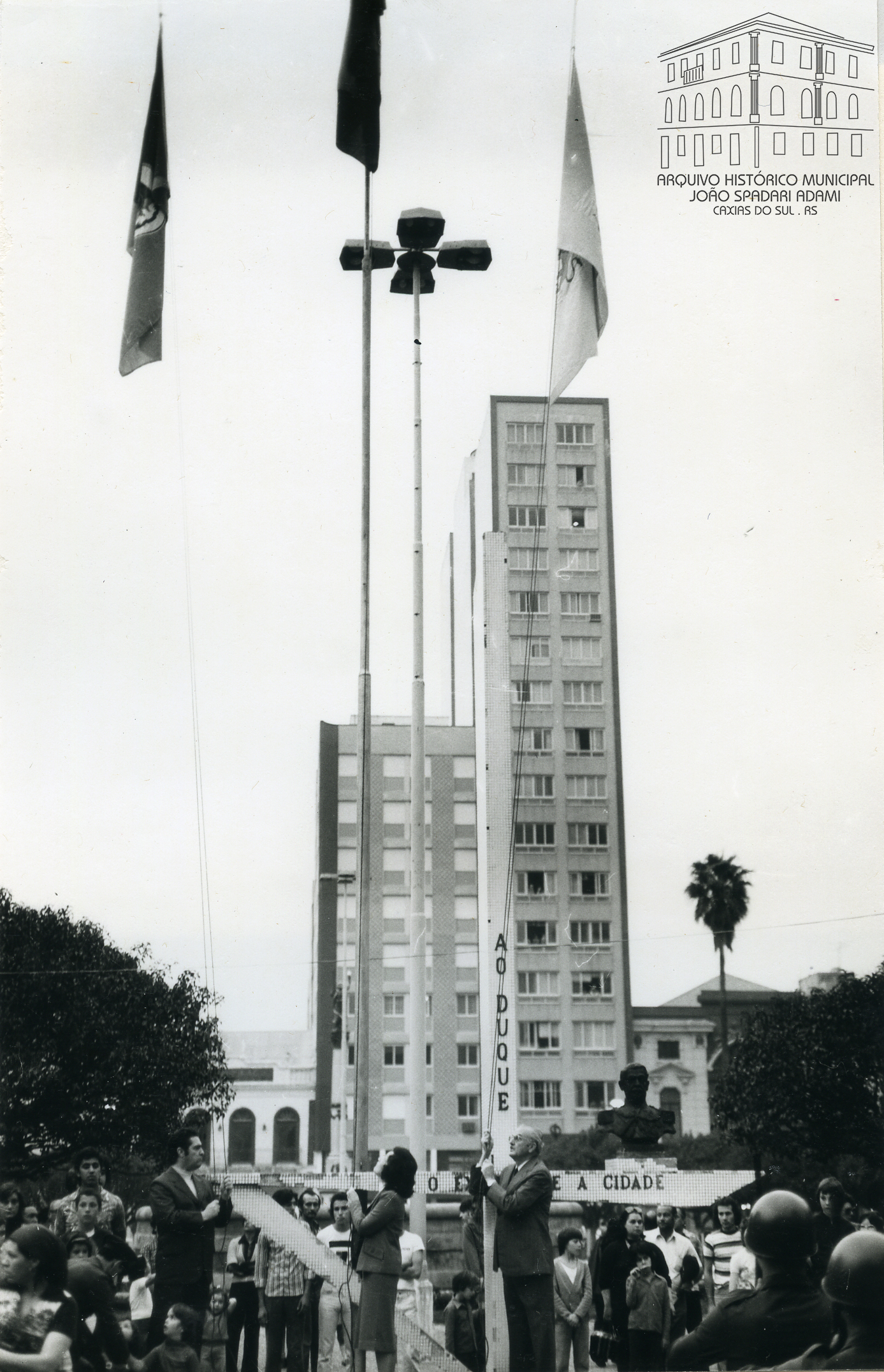 Hasteamento das Bandeiras na Praça Rui Barbosa, atual Praça Dante Alighieri, durante a Semana da Pátria.