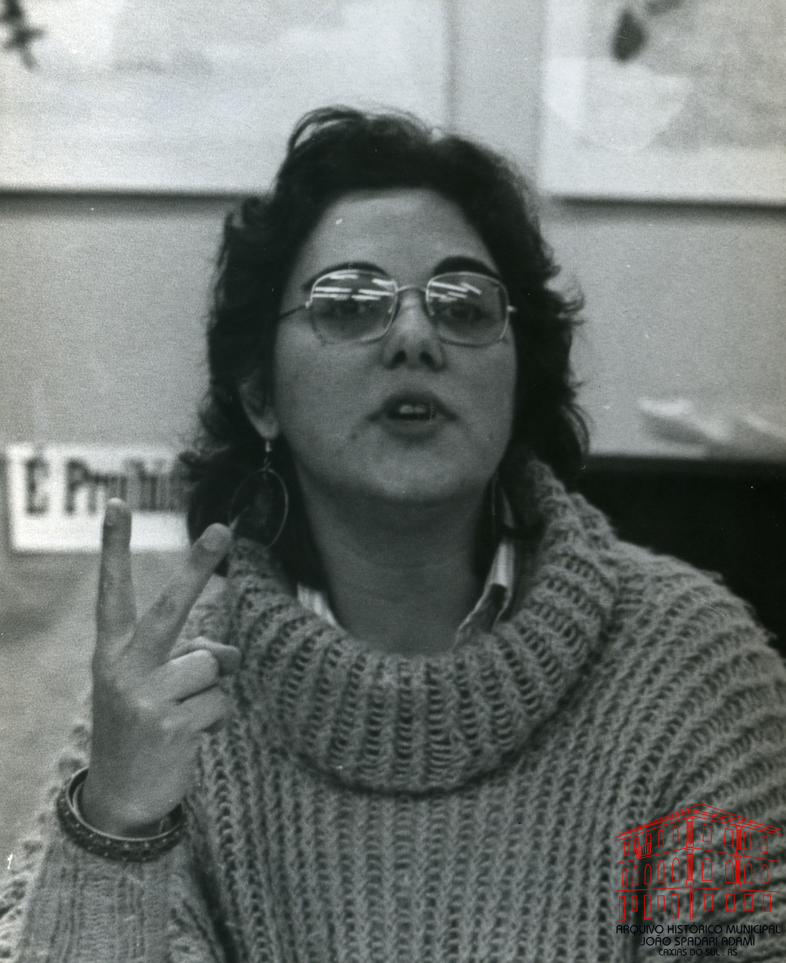 Mariza Abreu, professora do Instituto de Educação Flores da Cunha (Porto Alegre), na palestra sobre “A Democratização da Escola” durante encontro com diretores das escolas municipais, em 09 de julho de 1986. A professora participou como debatedora da reunião do 3º Núcleo com professores de escolas municipais, realizada na Escola Municipal Prefeito Luciano Corsetti, em 01 de julho de 1986, durante o IV Simpósio Municipal de Educação e I Simpósio Regional de Educação.