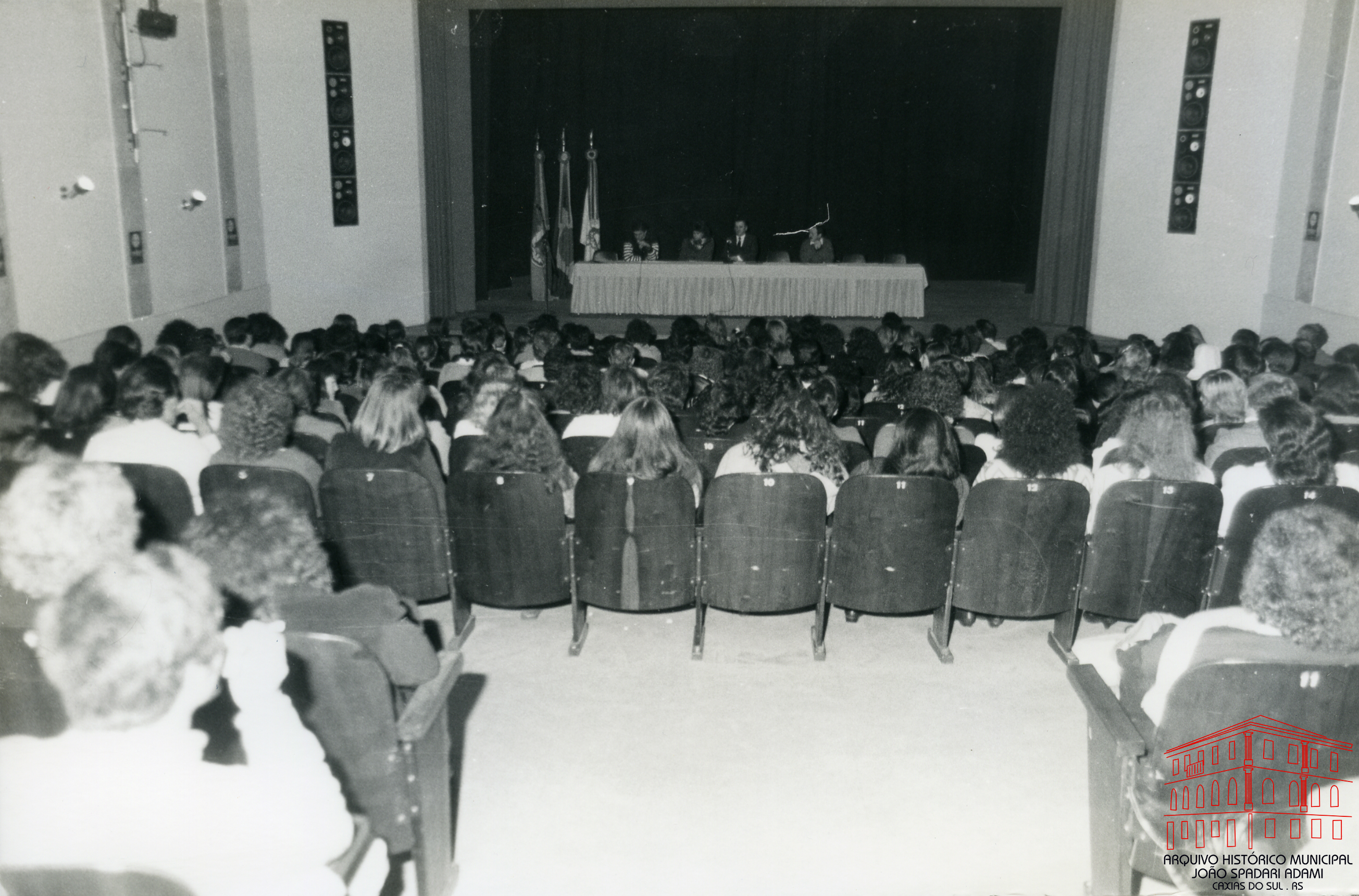 Participantes do painel “A escola e a questão das drogas e da educação sexual”, durante o VI Simpósio Municipal de Educação e III Simpósio Regional de Educação, realizado na Casa da Cultura Percy Vargas de Abreu e Lima, em 25 de junho de 1988.