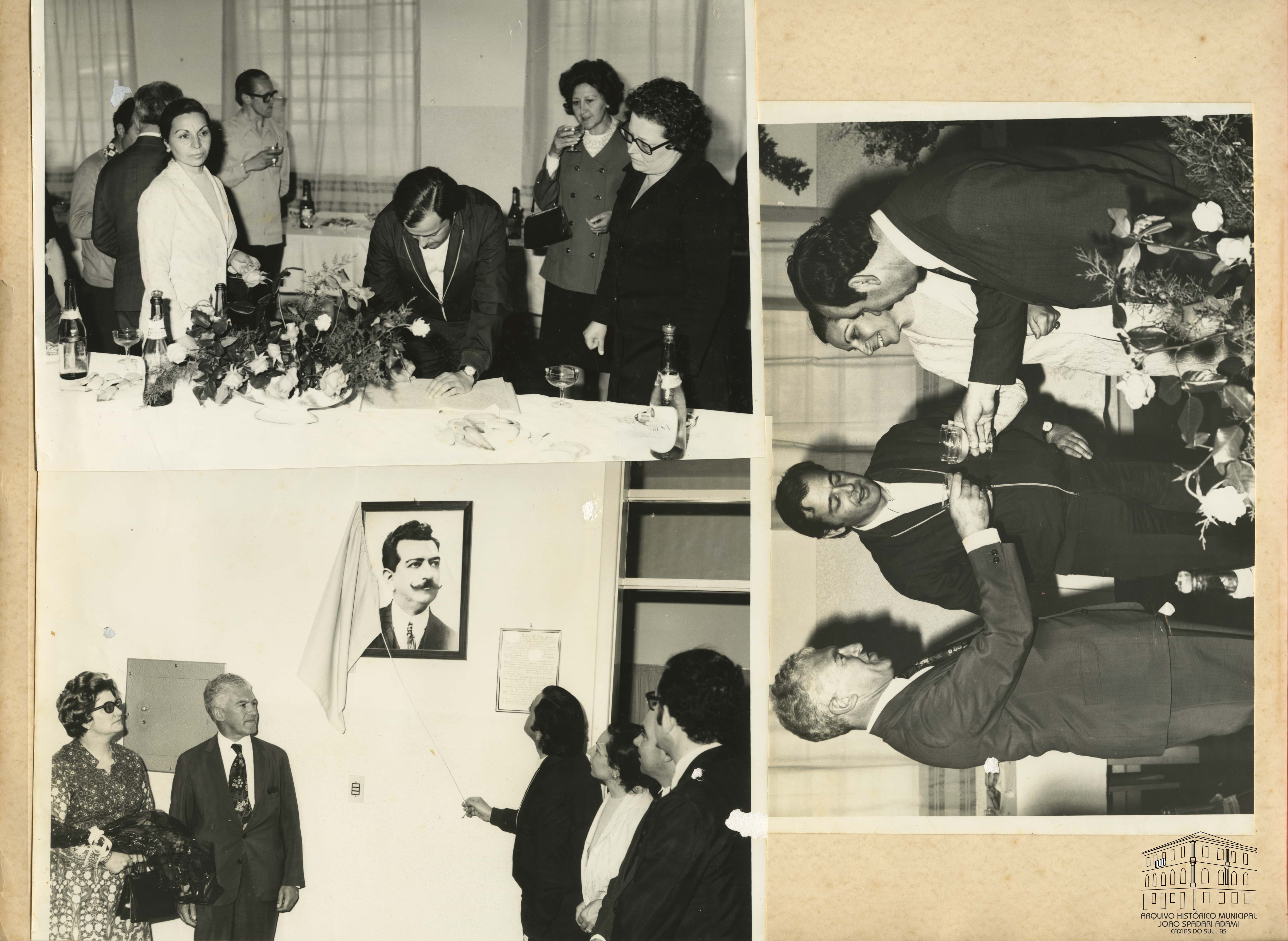 Fotografia 06: À esquerda, Prefeito Victorio Trez, à sua frente, Secretária Municipal da Educação e Cultura, Hilda Bazo, no coquetel de inauguração do Grupo Escolar Municipal Caldas Júnior, situado no Bairro Petrópolis, em 24 de outubro de 1972.