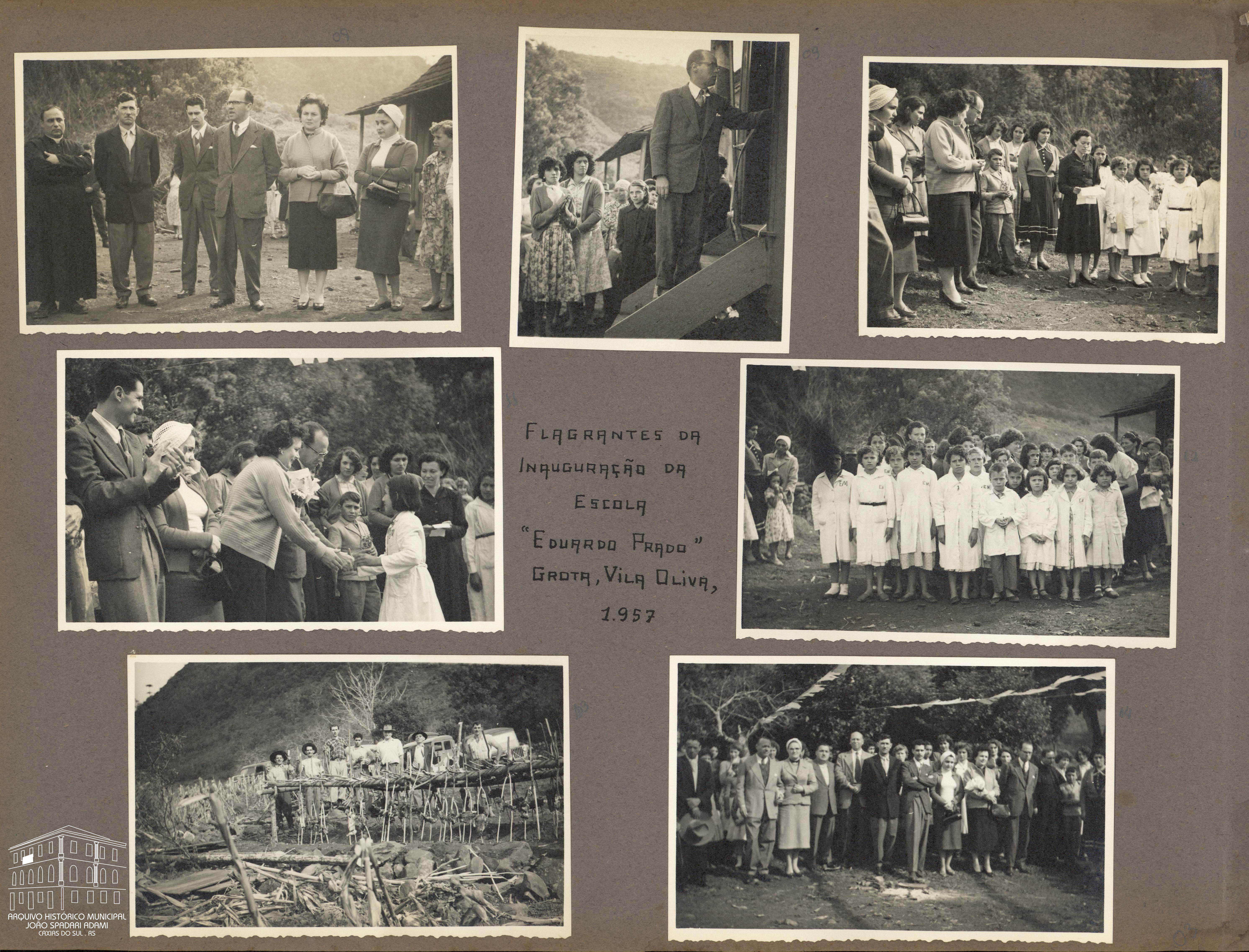 Foto 8:Ao centro, de óculos, Prefeito Rubem Bento Alves na inauguração da Escola Eduardo Prado, situada na Grota, em Vila Oliva, no ano de 1957.