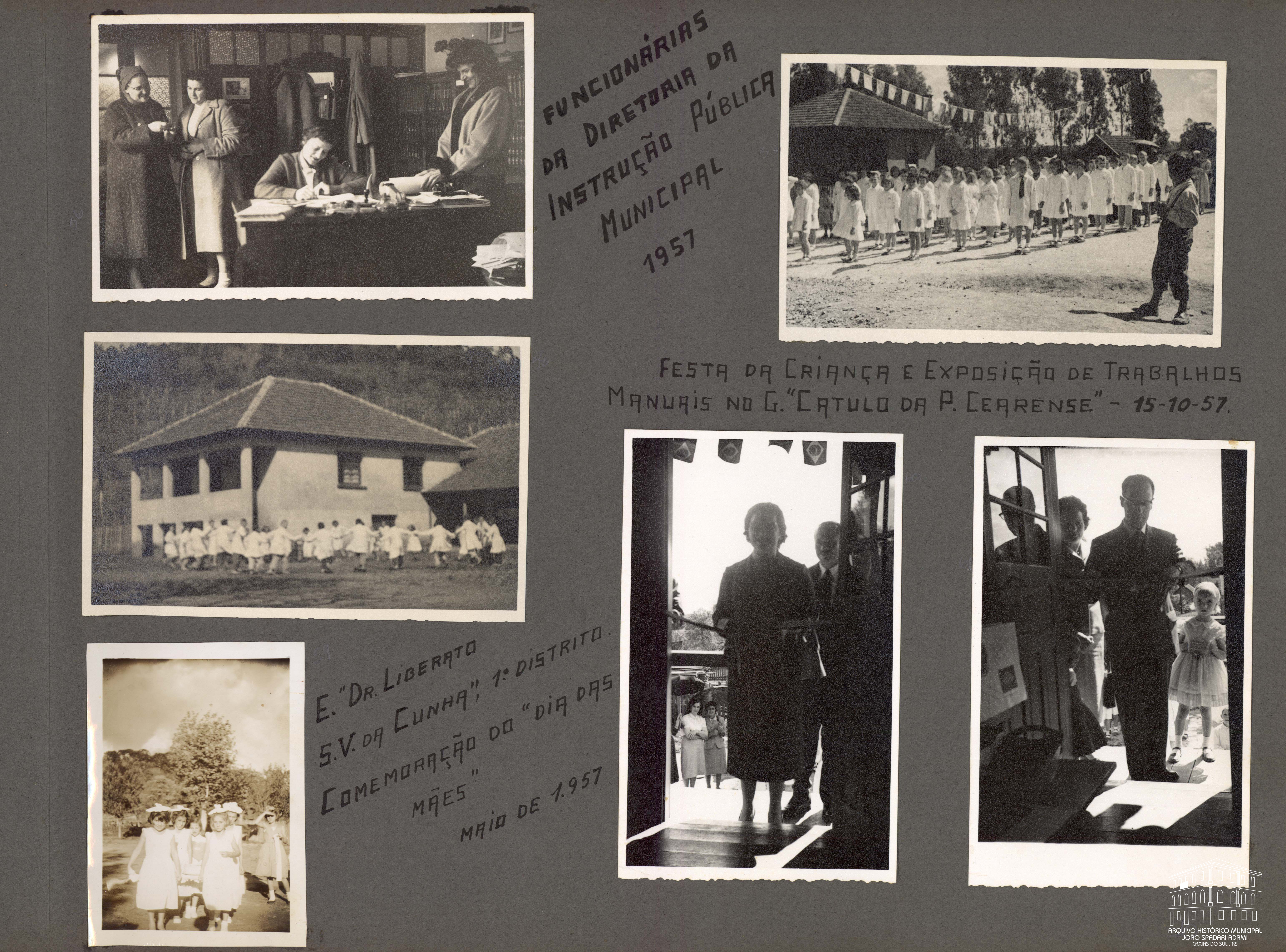 Foto 59: Seis meninas na comemoração do Dia das Mães da Escola Dr. Liberato Salzano Vieira da Cunha, situada no 1° distrito, em maio de 1957.