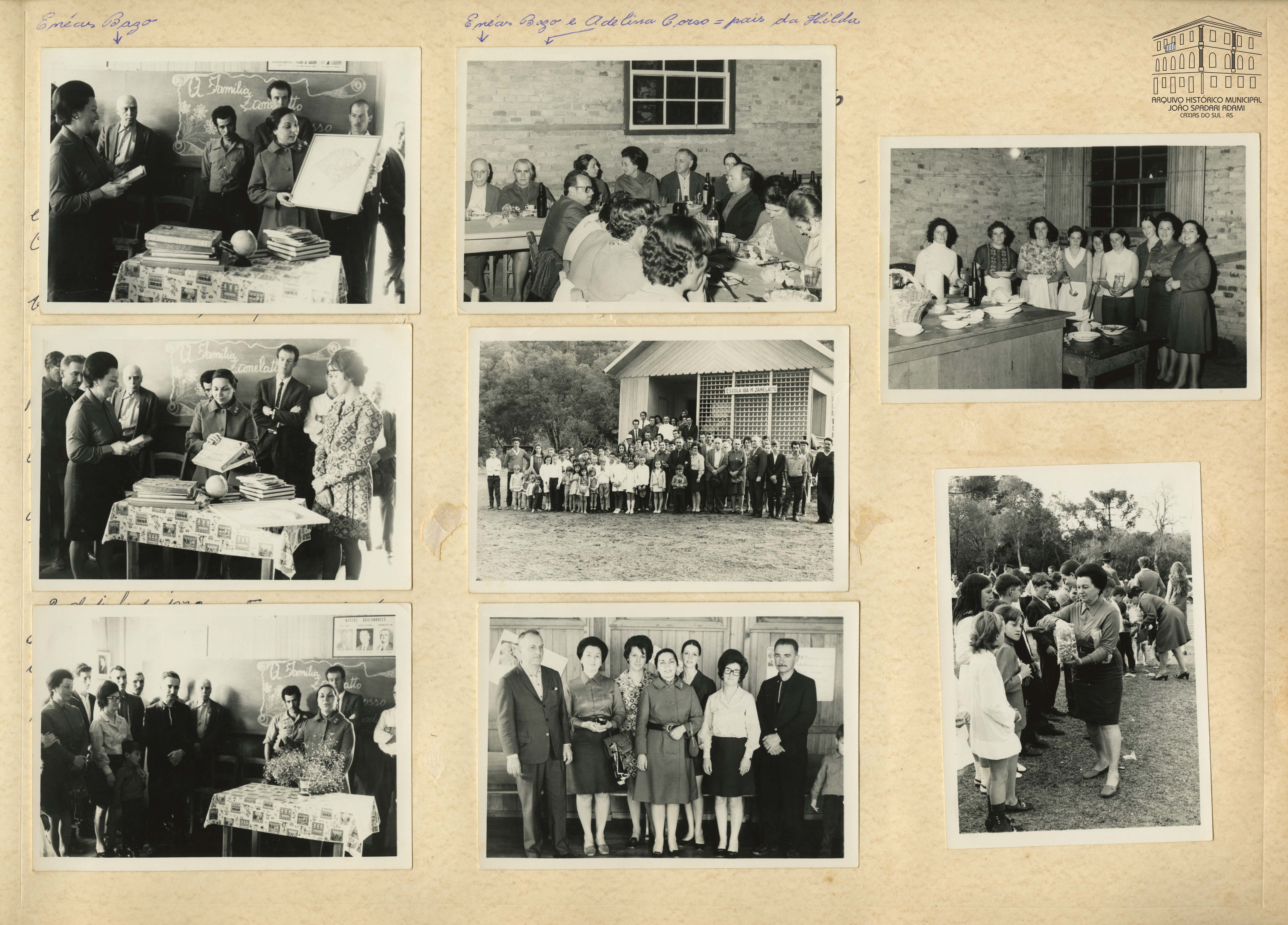 Fotografia 61: No interior da Escola Ida Marcucci Zanelatto, situada na Zona Giacomet, Distrito de Fazenda Souza, autoridades e Hilda Bazo, Secretária Municipal da Educação e Cultura.