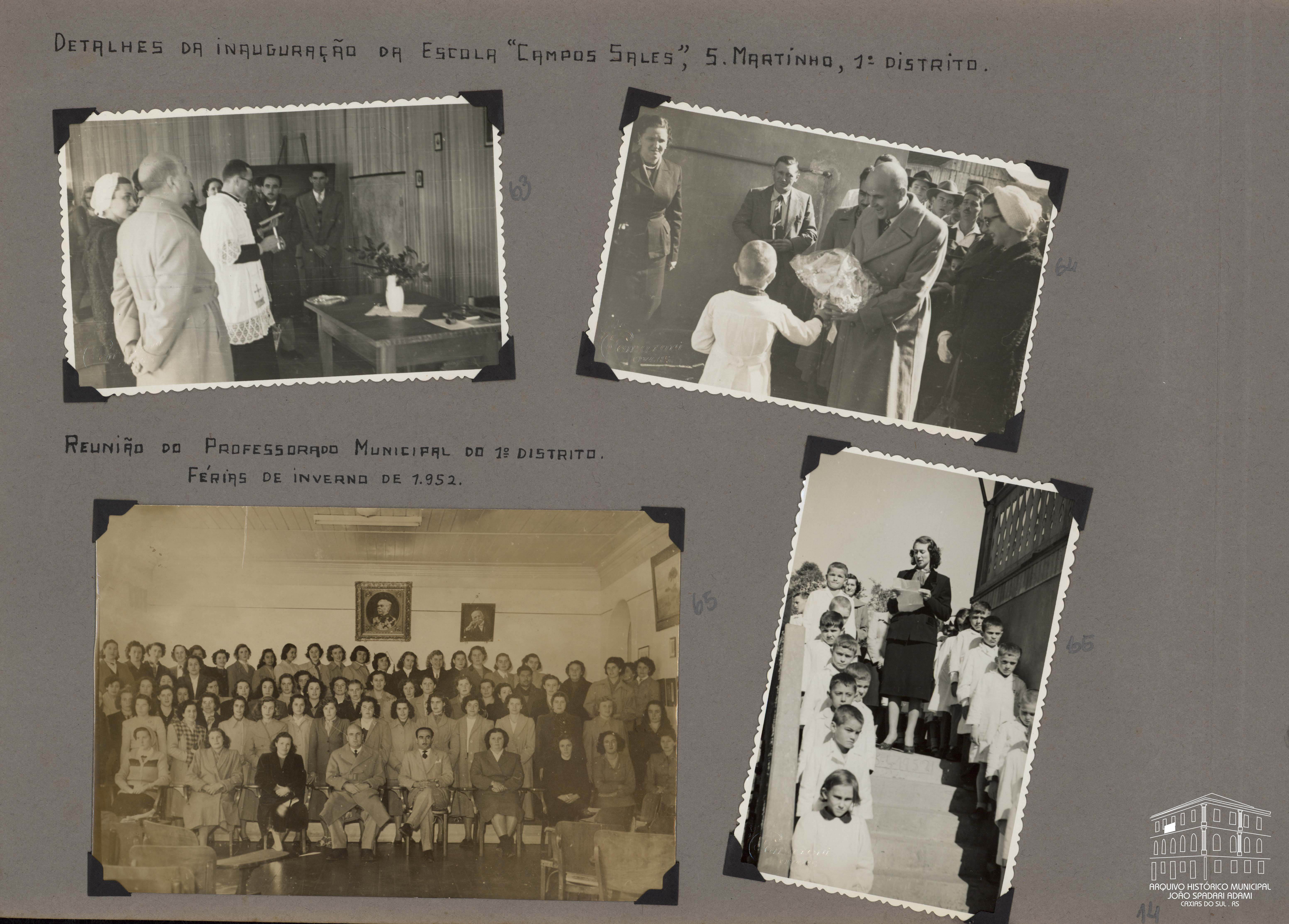 Foto 66: Na escadaria, professora e alunos na inauguração da Escola Campos Sales, em São Martinho, no 1º Distrito.