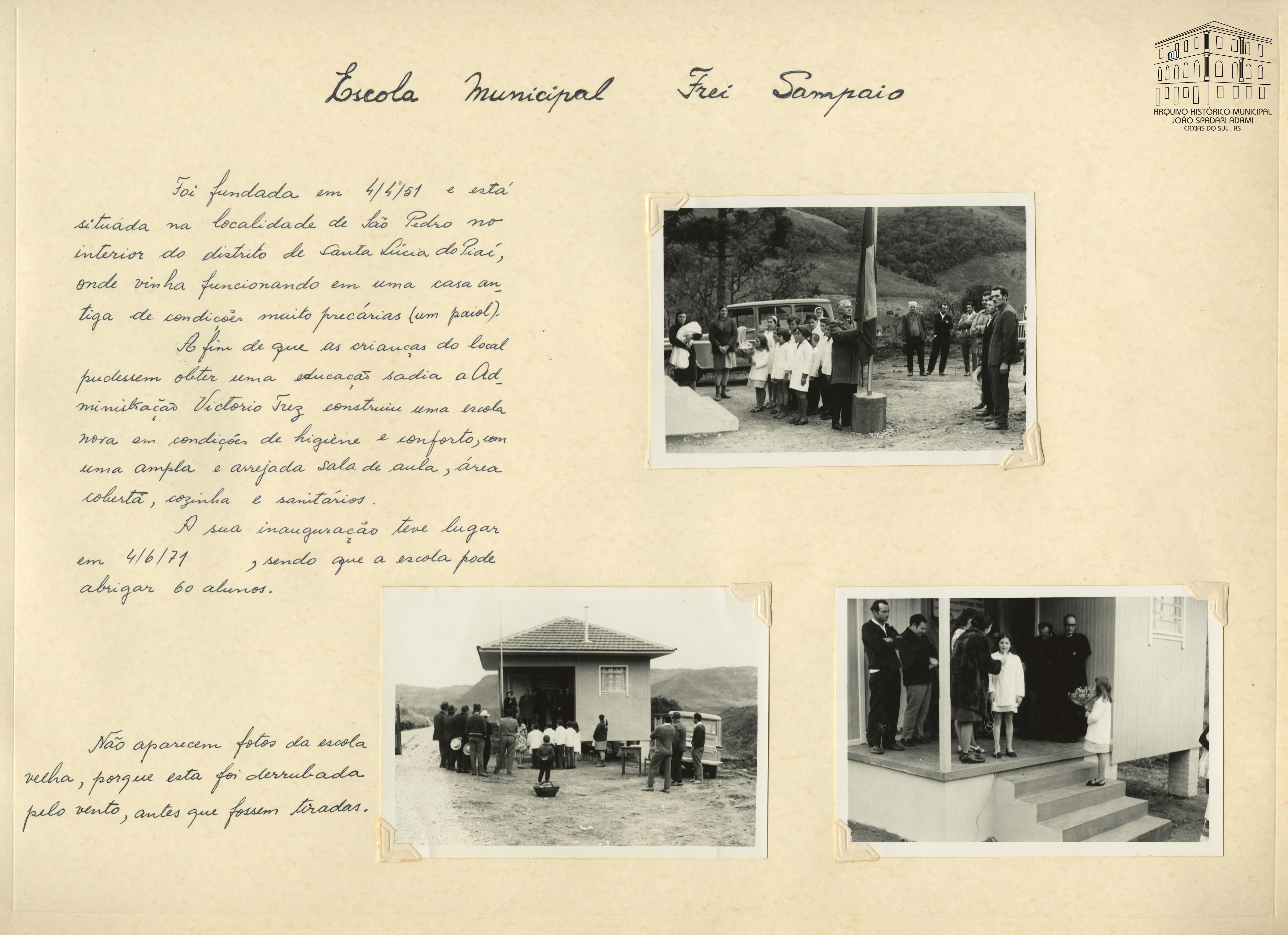 Fotografia 47: Autoridades e comunidade escolar na inauguração da Escola Municipal Frei Sampaio, situada em São Pedro, Distrito de Santa Lúcia do Piaí, em 04 de junho de 1971.