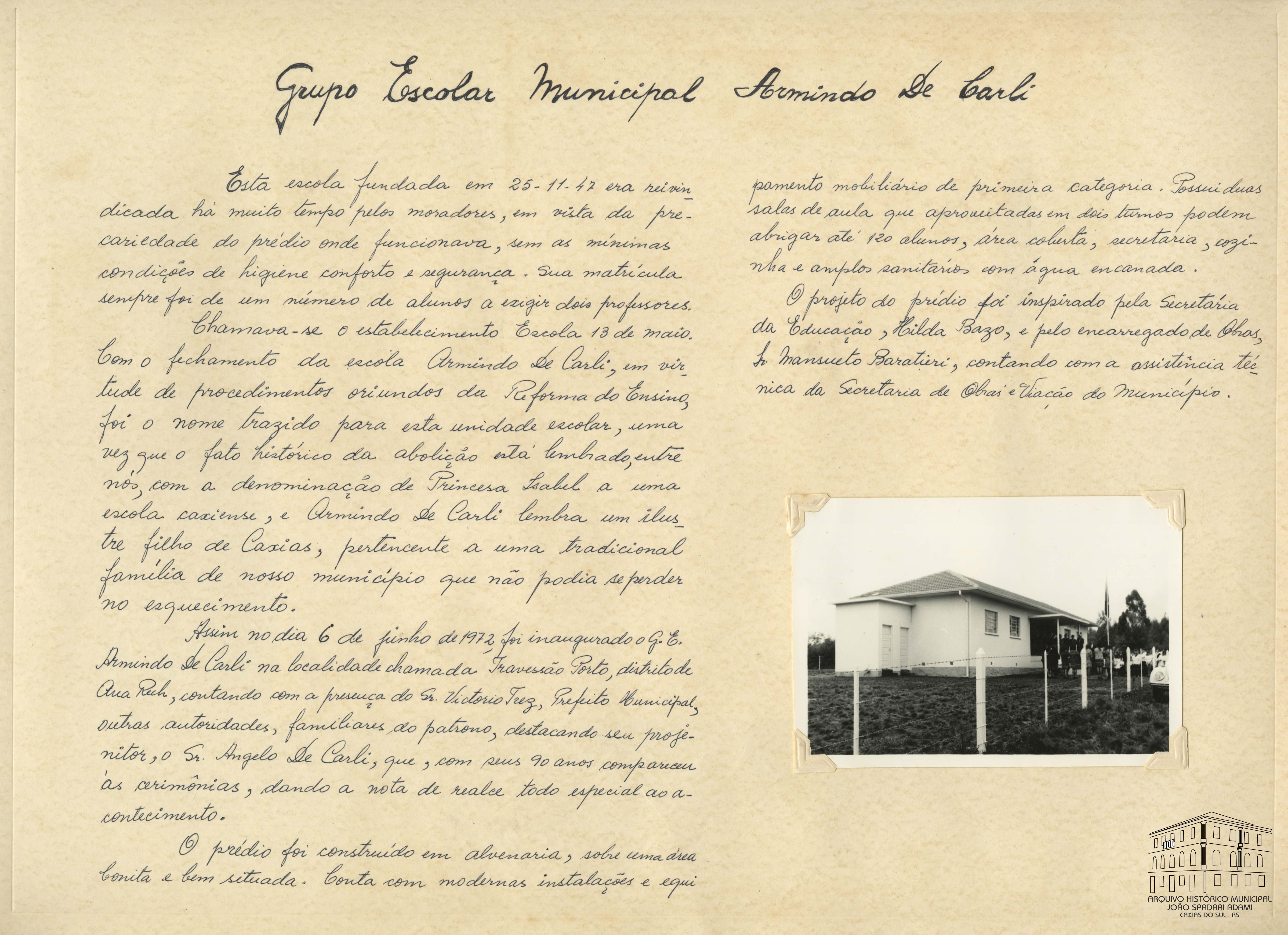Fotografia 70: Novo prédio do Grupo Escolar Municipal Armindo de Carli, situada no Travessão Porto, em Ana Rech, inaugurado em 06 de junho de 1972.