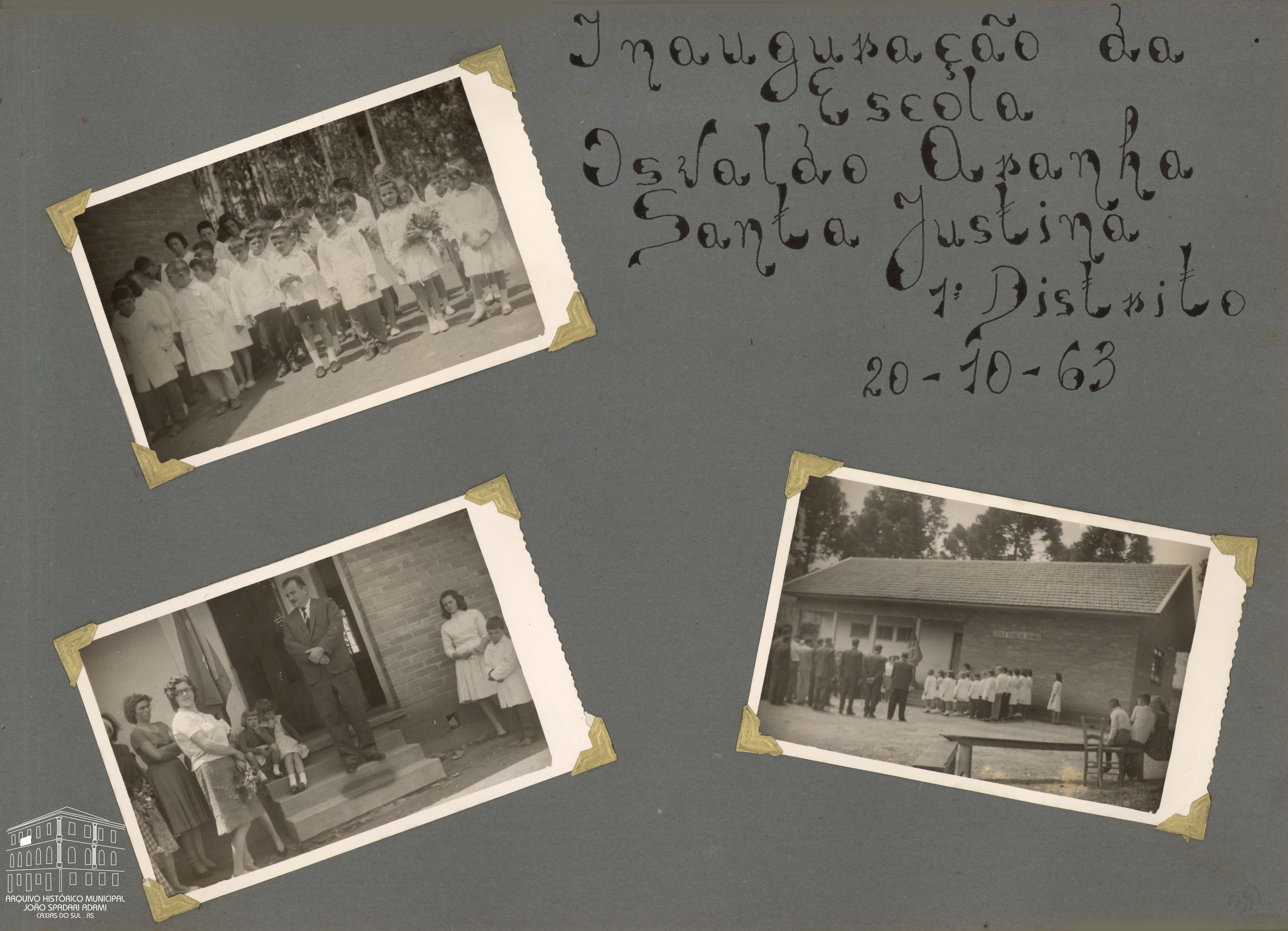 Foto 123: Alunos uniformizados na inauguração da Escola Osvaldo Aranha, situada em Santa Justina, 1º Distrito, em 20 de outubro de 1963.