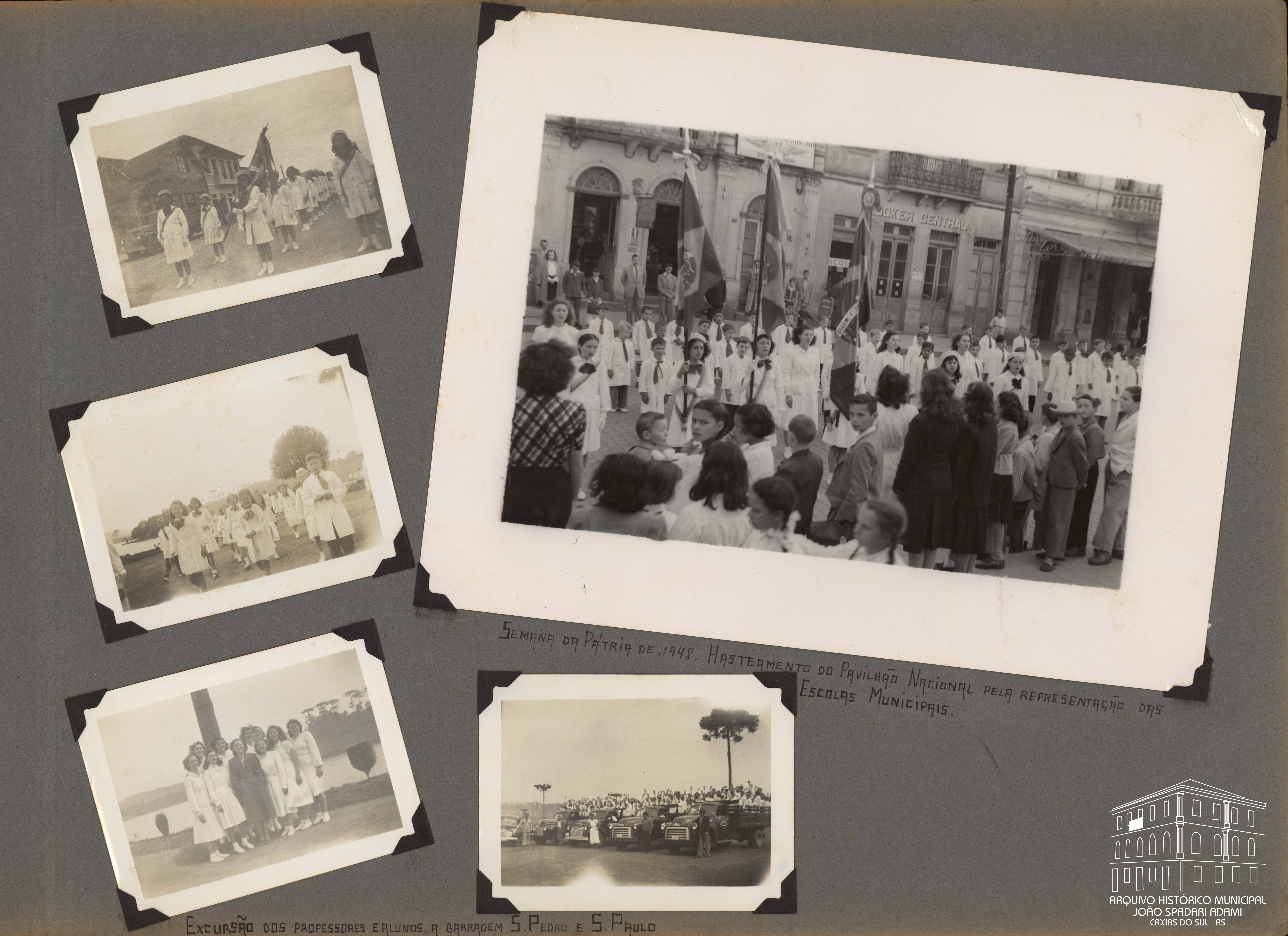 Foto 126: Alunos de escolas municipais no hasteamento da Bandeira Nacional durante a Semana da pátria de 1948.