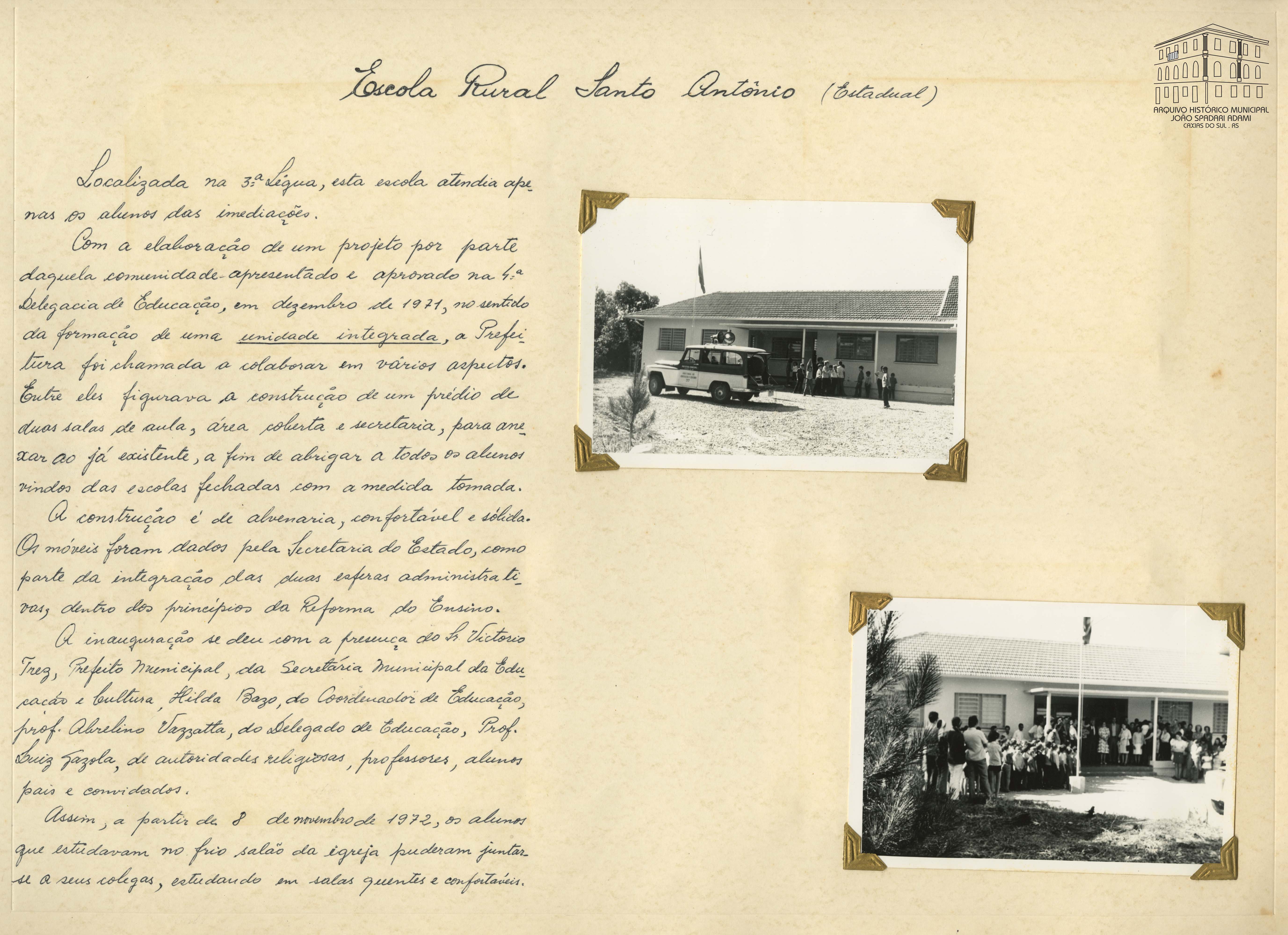 Fotografia 139: Autoridades e comunidade escolar na frente do prédio novo da Escola Rural Santo Antônio, na localidade da 3ª Légua, na data da inauguração, em 08 de dezembro de 1972.